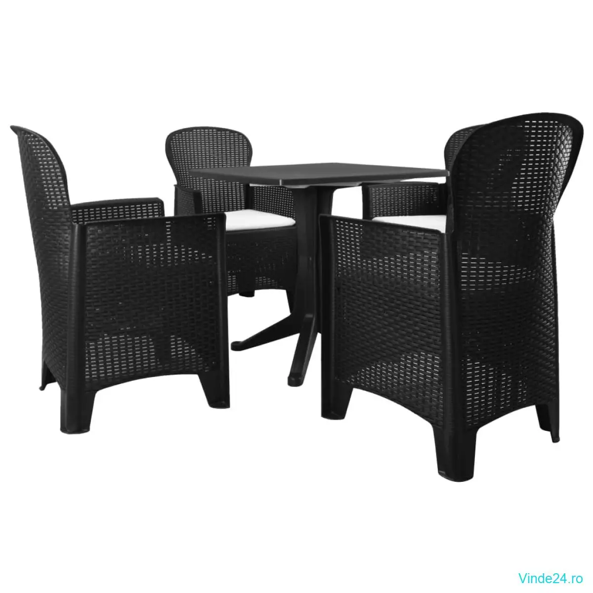 Pachetul de livrare include 1 masă, 4 scaune și 4 perne de șezut.