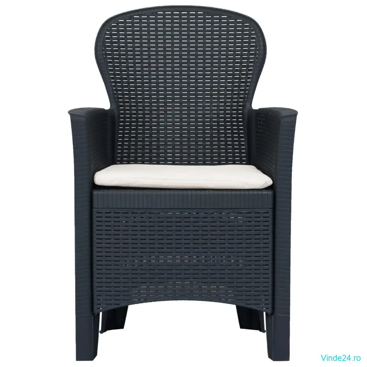Setul de mobilier de grădină este fabricat din plastic rezistent, fiind durabil și robust, precum și rezistent la intemperii și ușor de curățat. În același timp, aspectul de ratan al acestor scaune adaugă o notă de farmec natural spațiului de exterior. Setul de mobilier de grădină are o greutate redusă și poate fi mutat cu ușurință. Masa și scaunele de grădină sunt ușor de asamblat.