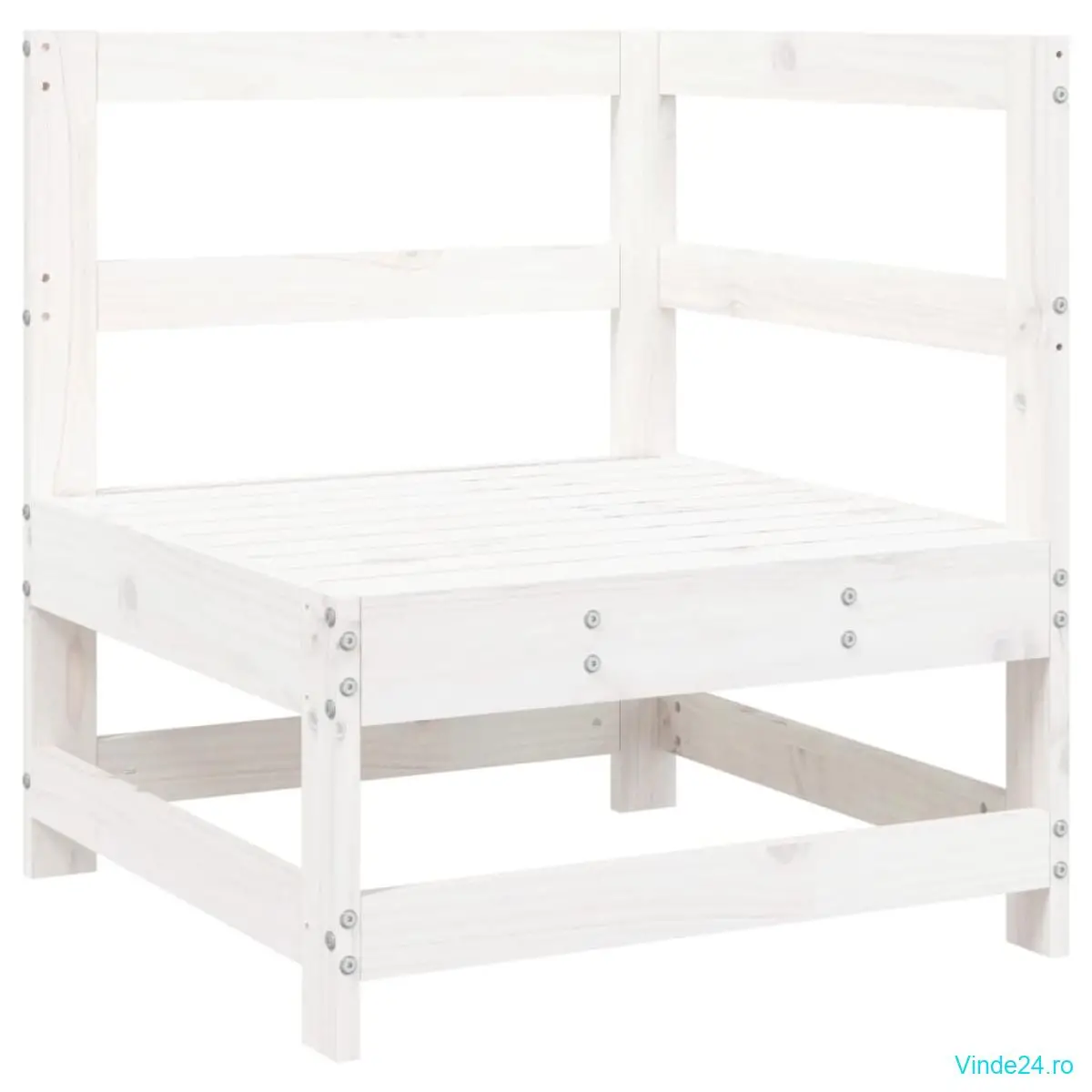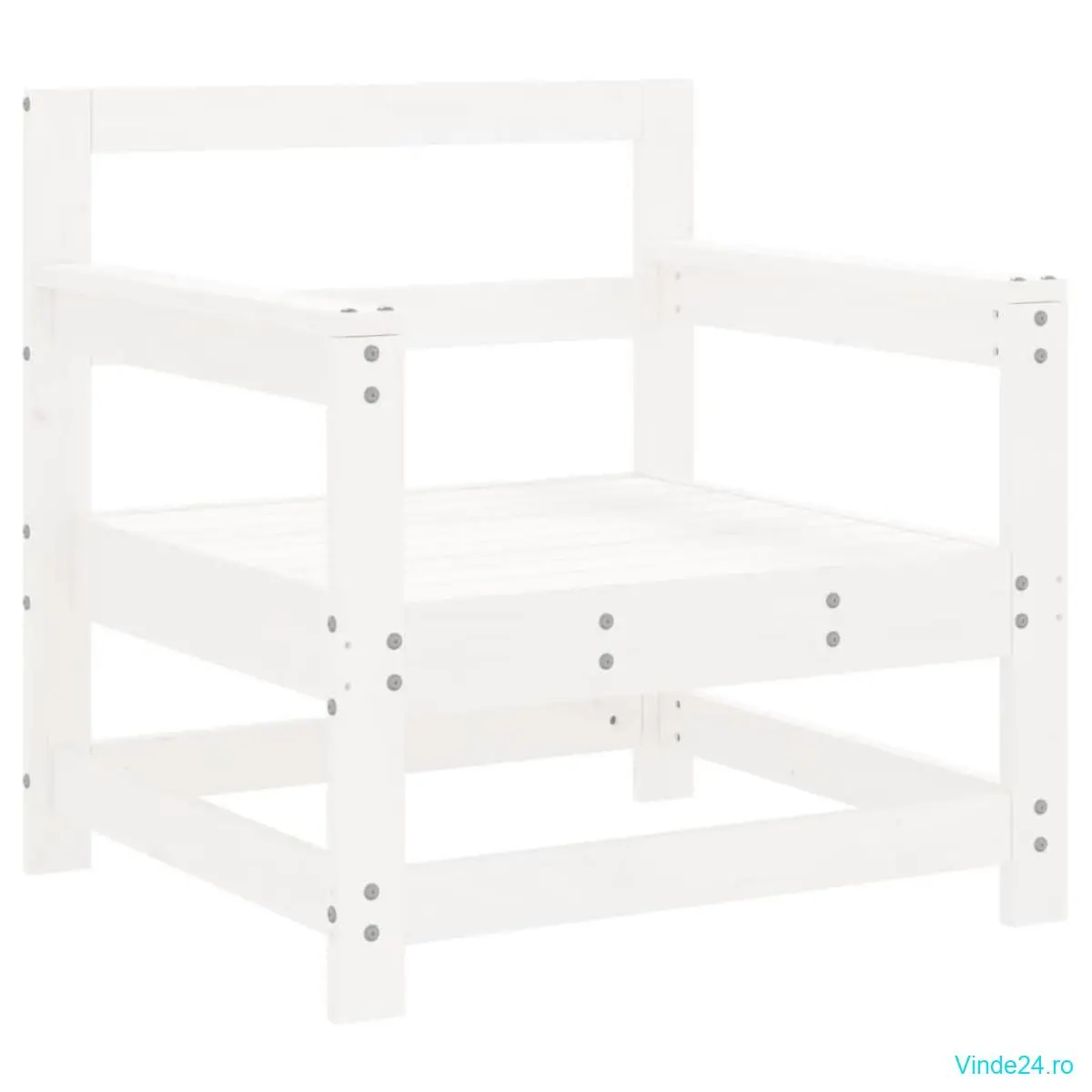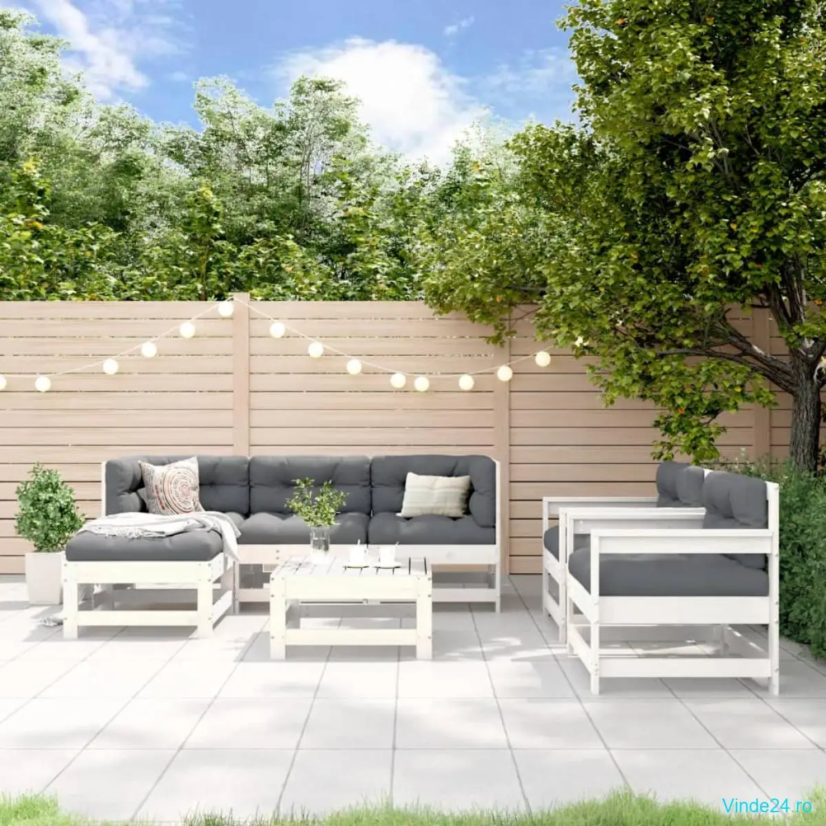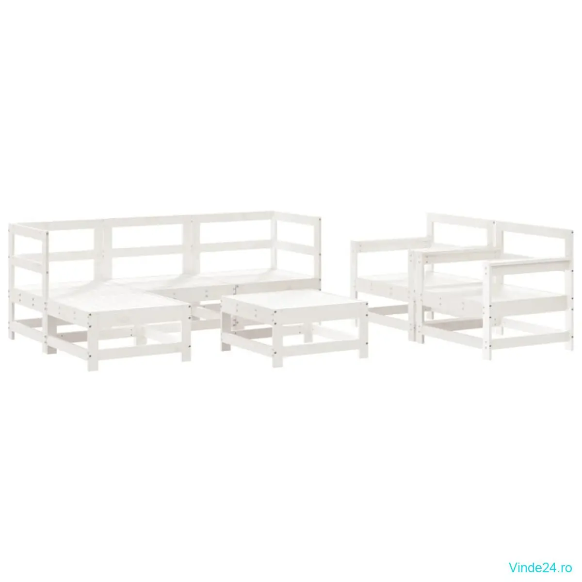 vidaXL Set mobilier de grădină, 7 piese, alb, lemn masiv de pin