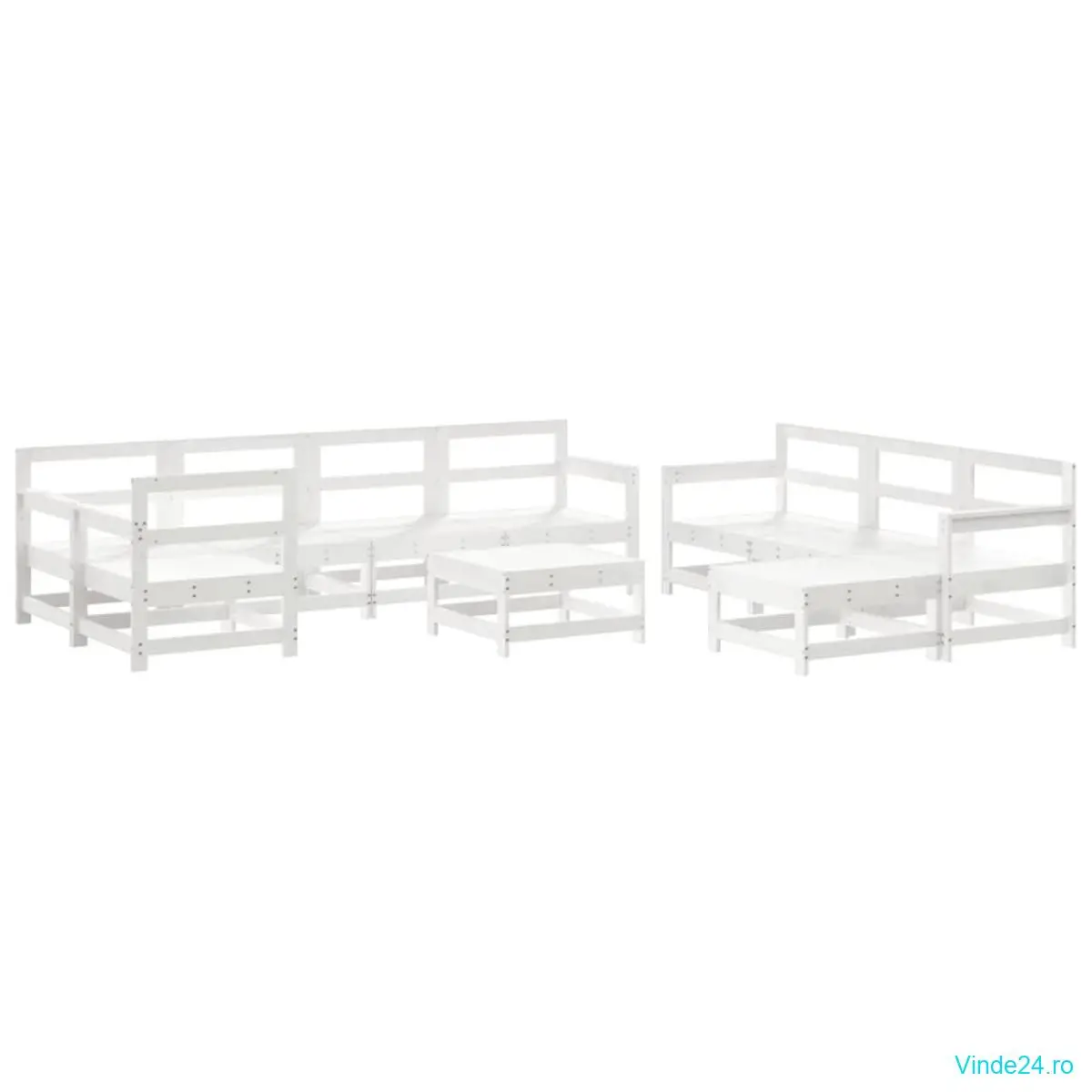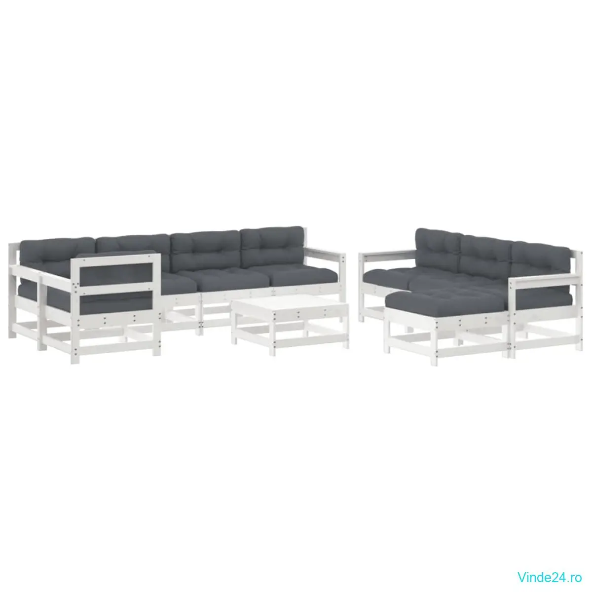 vidaXL Set mobilier de grădină cu perne, 10 piese, alb, lemn masiv
