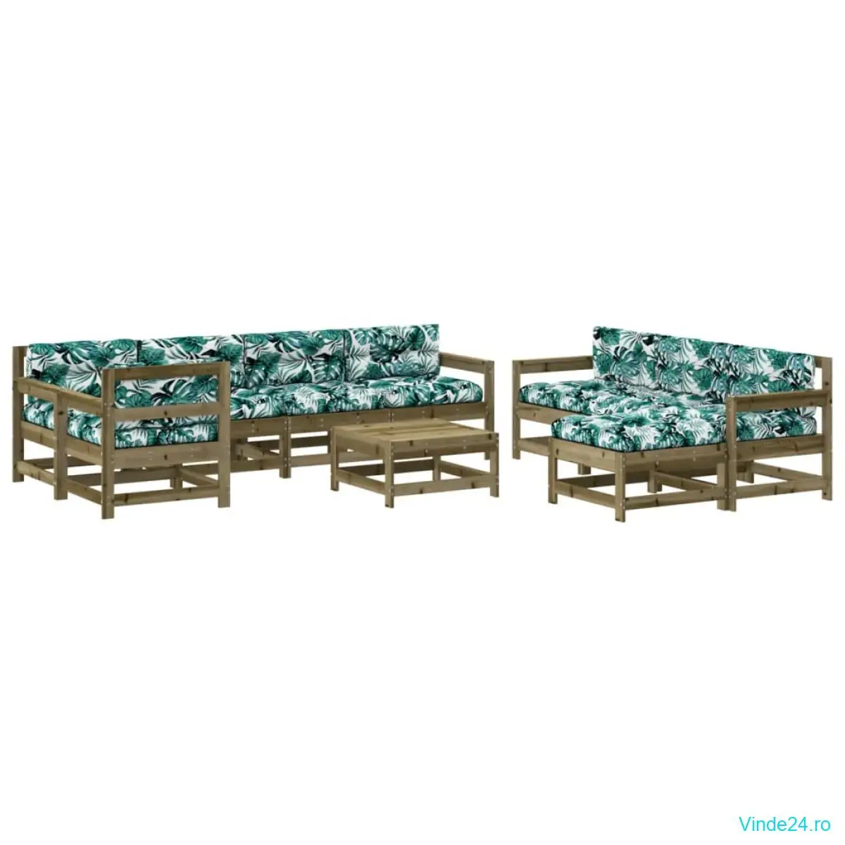 vidaXL Set mobilier de grădină cu perne, 10 piese, lemn de pin tratat