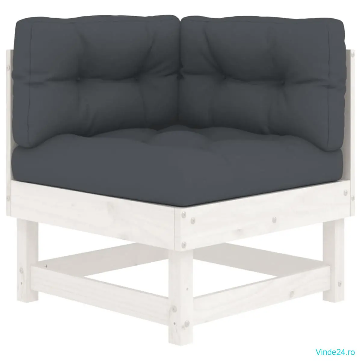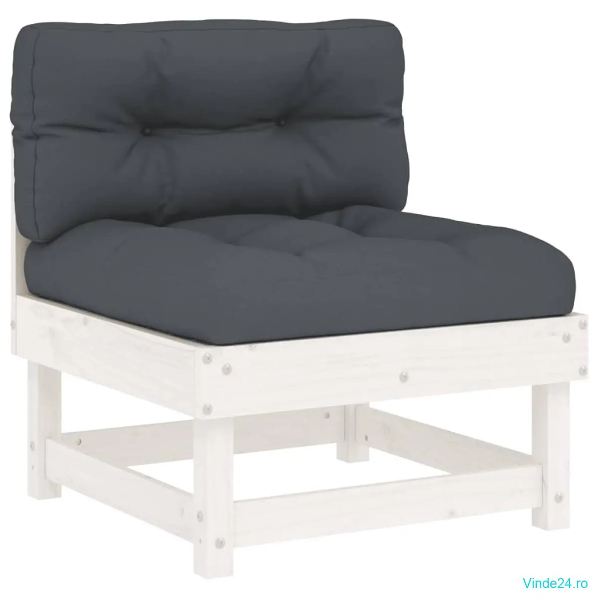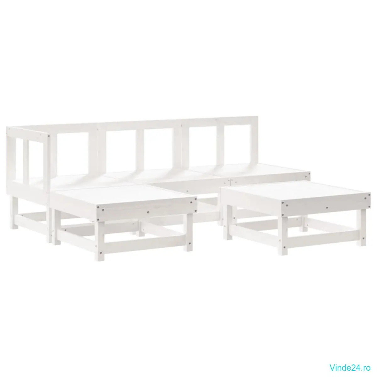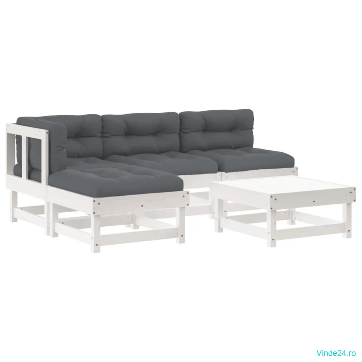 vidaXL Set mobilier de grădină cu perne, 5 piese, alb, lemn masiv