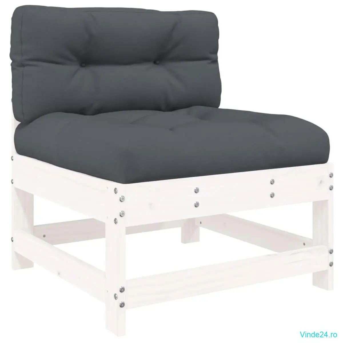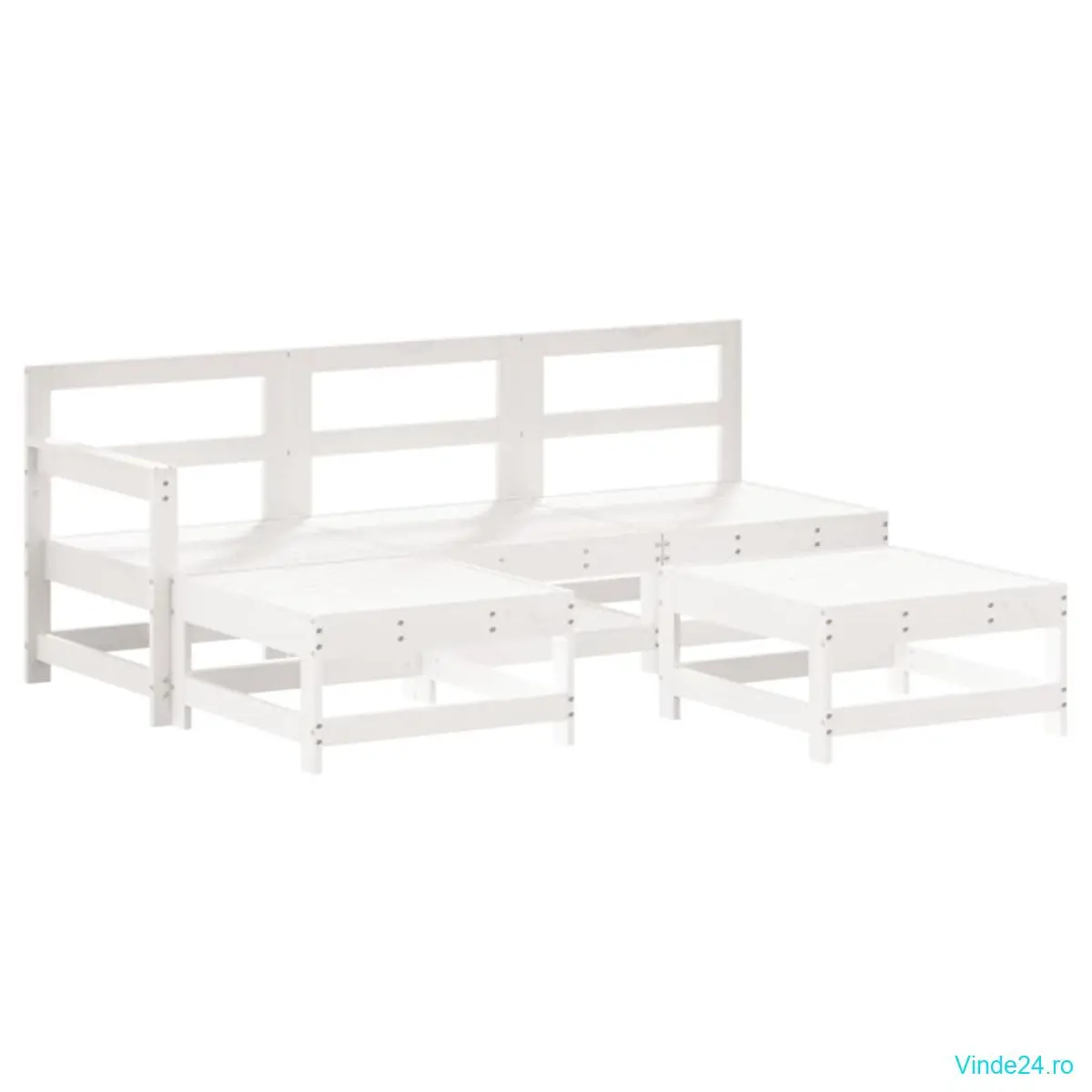 vidaXL Set mobilier de grădină cu perne, 5 piese, alb, lemn masiv