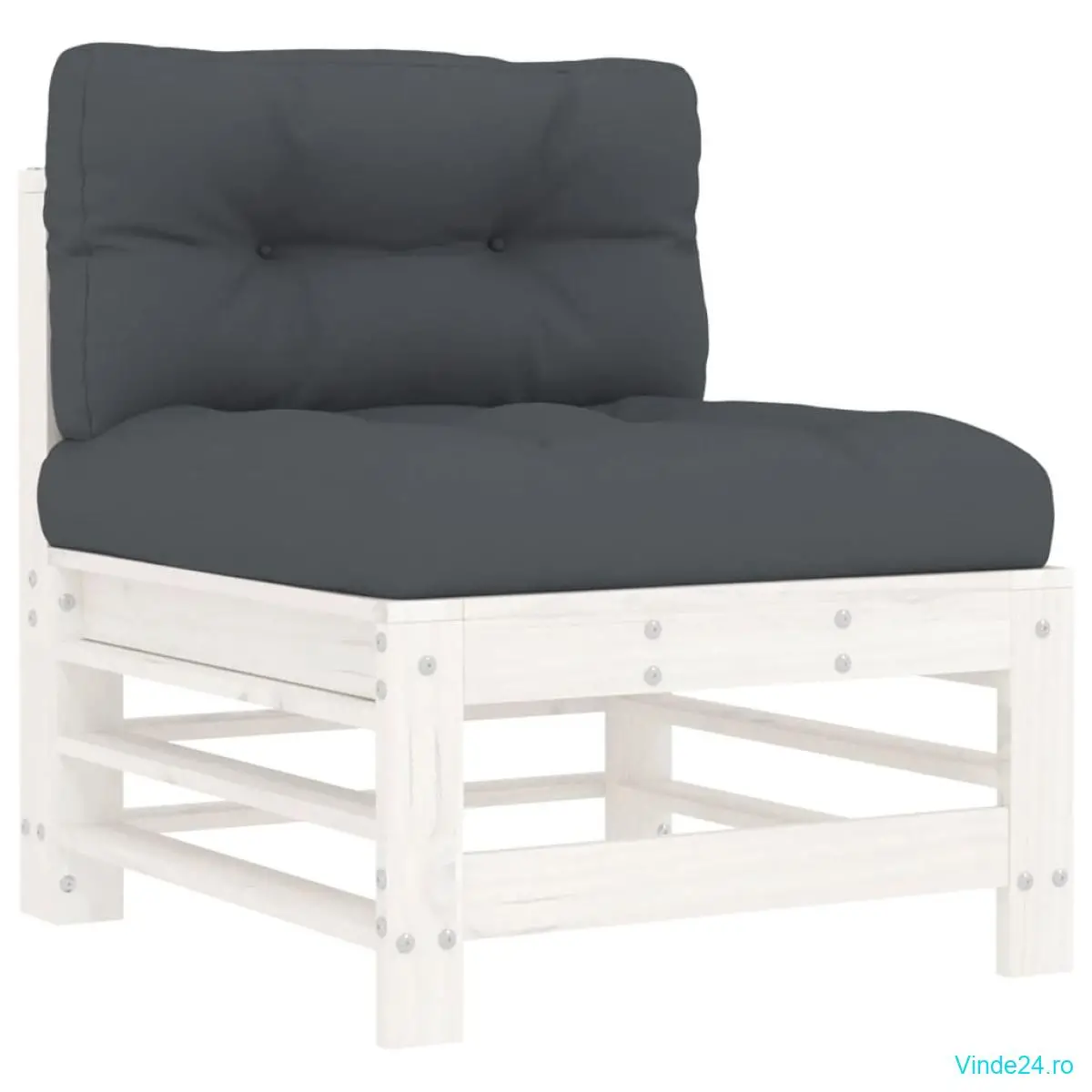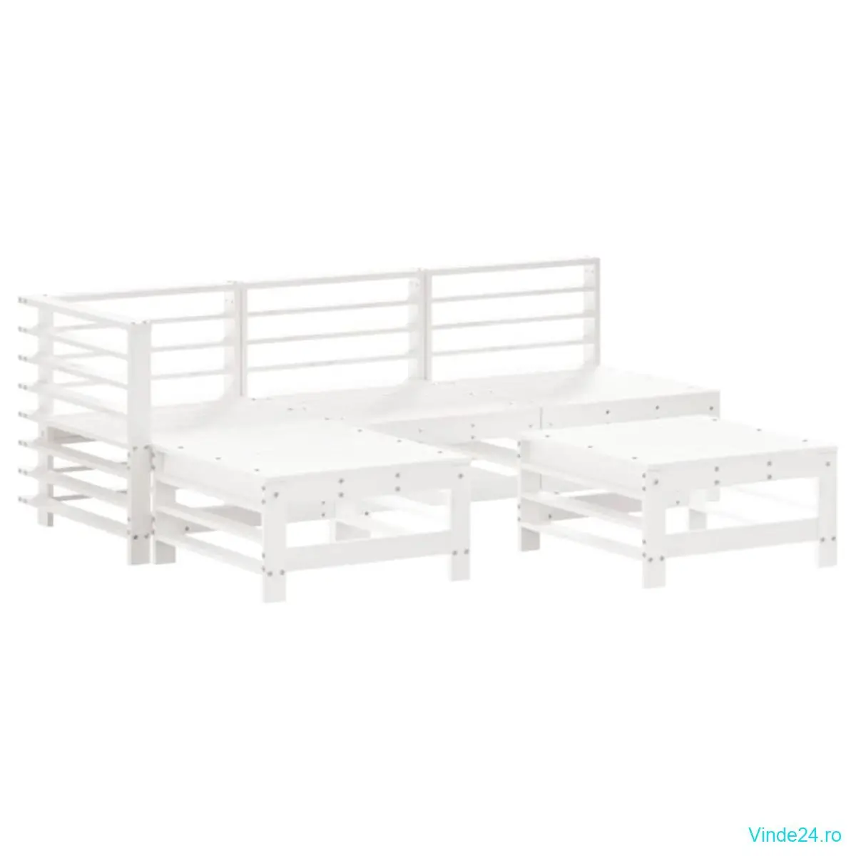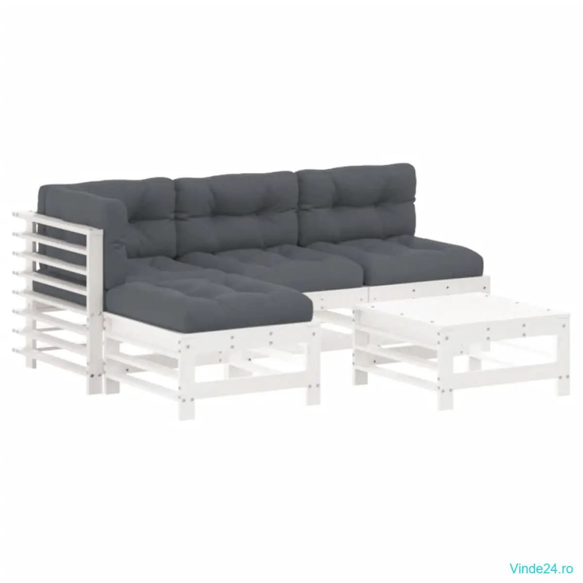 vidaXL Set mobilier de grădină cu perne, 5 piese, alb, lemn masiv