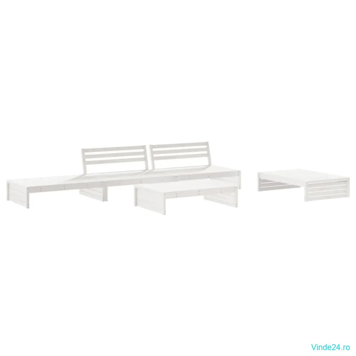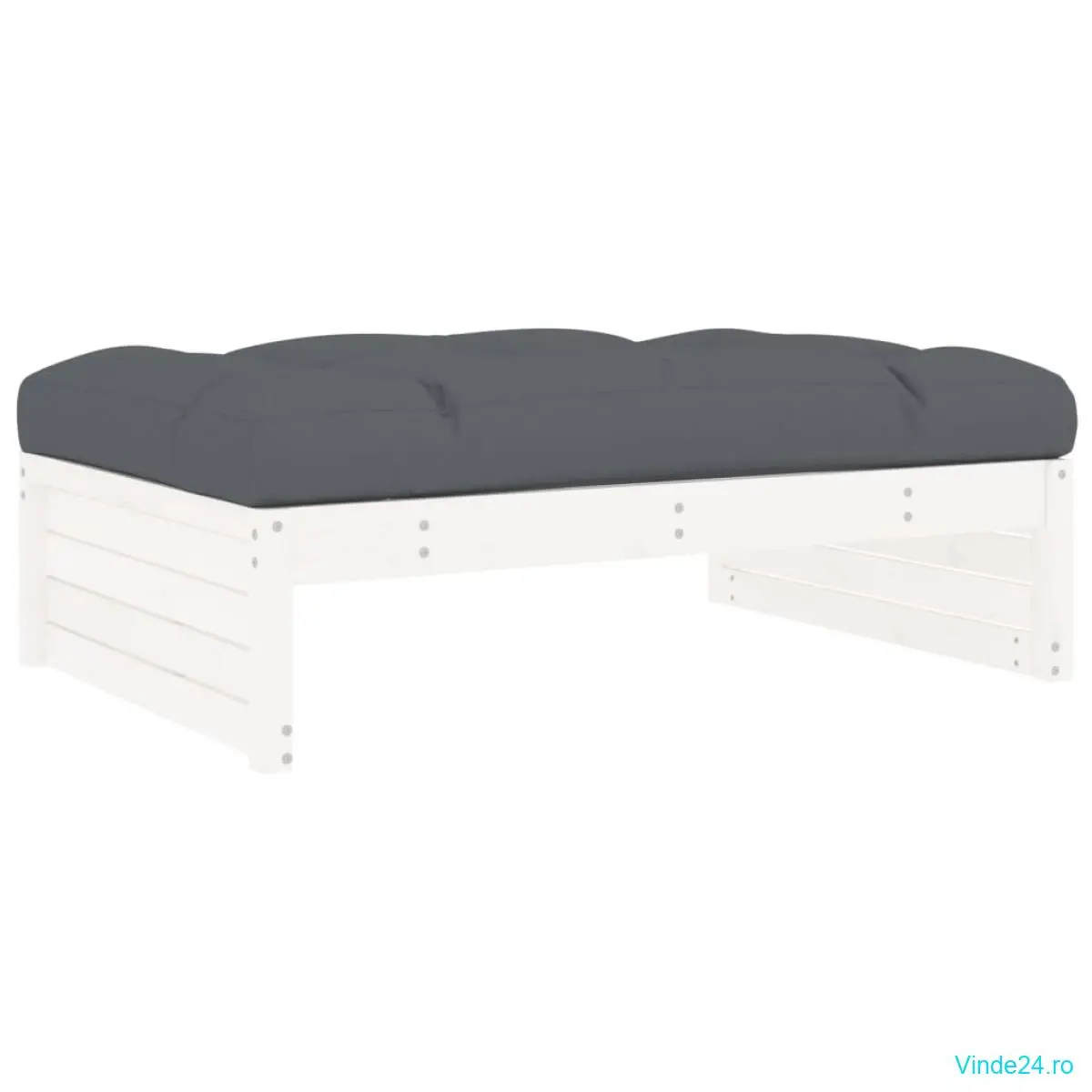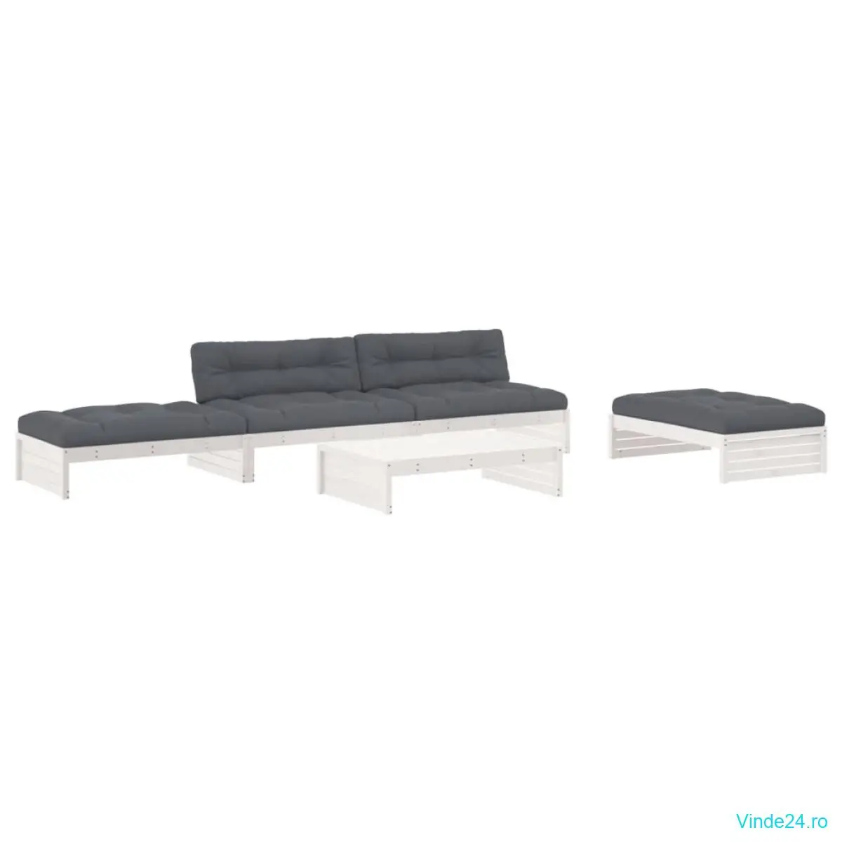 vidaXL Set mobilier de grădină cu perne, 5 piese, alb, lemn masiv