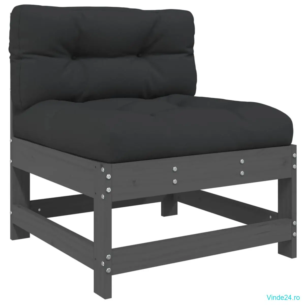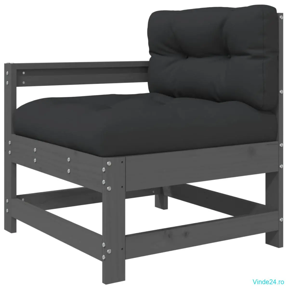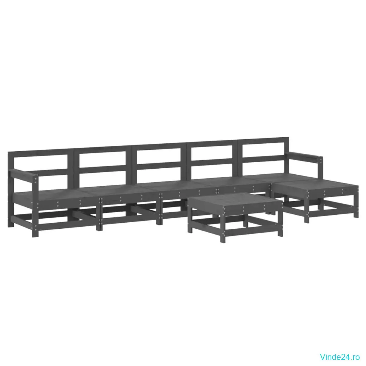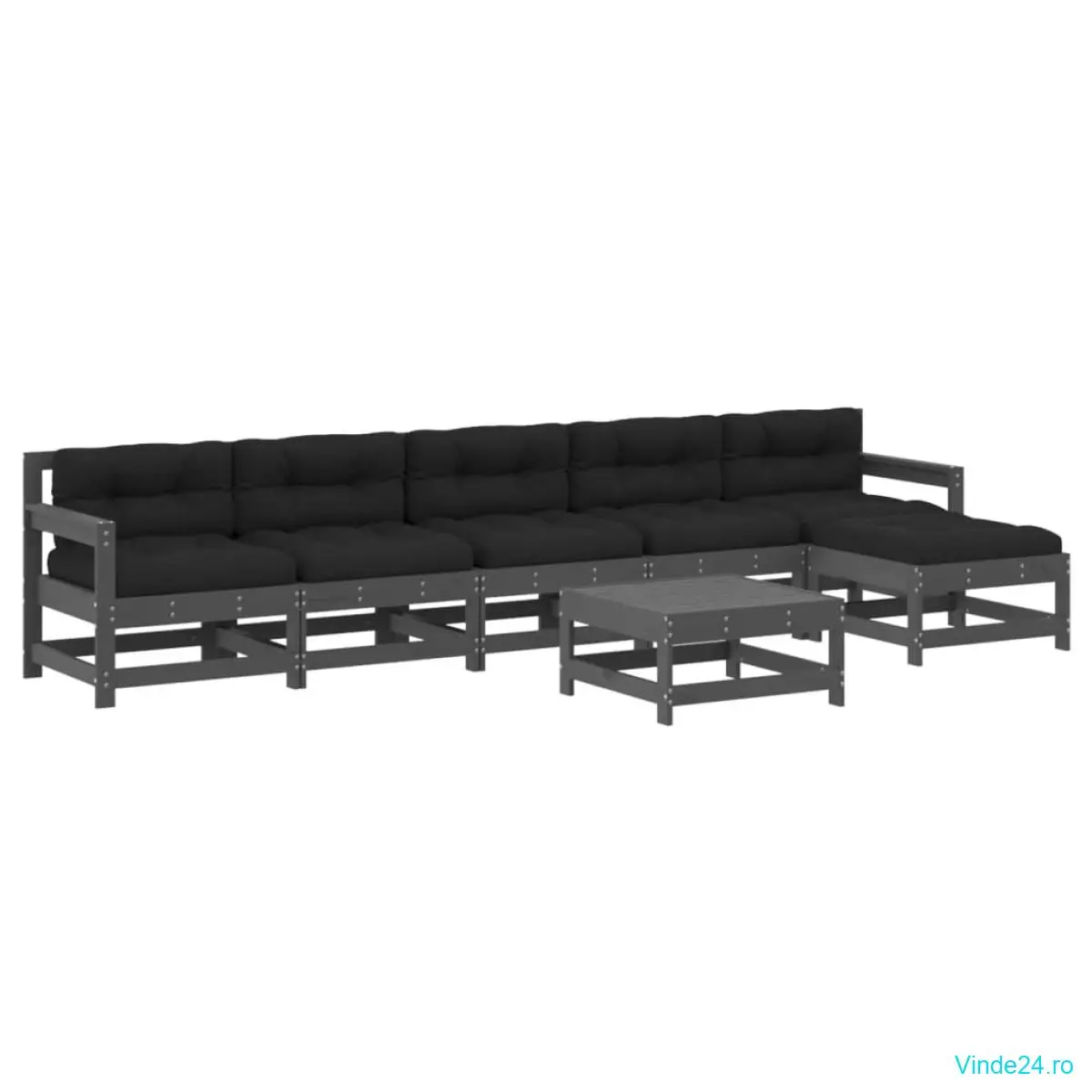 vidaXL Set mobilier de grădină cu perne, 7 piese, gri, lemn masiv