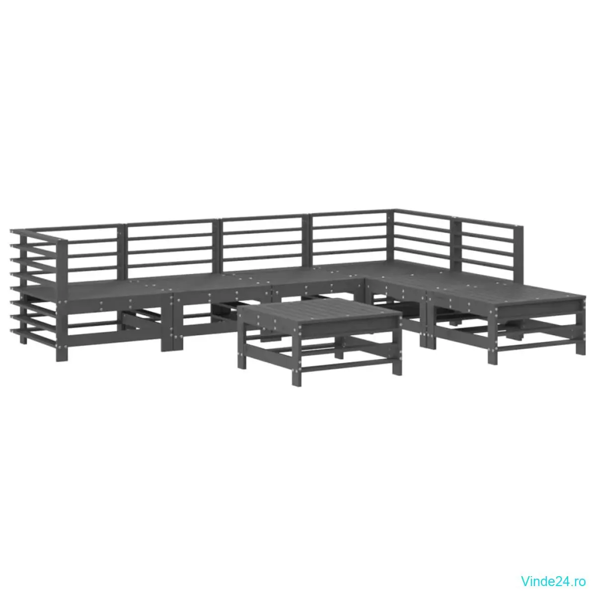 vidaXL Set mobilier de grădină cu perne, 7 piese, gri, lemn masiv