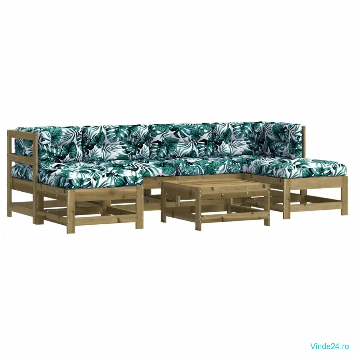 vidaXL Set mobilier de grădină cu perne, 7 piese, lemn de pin tratat