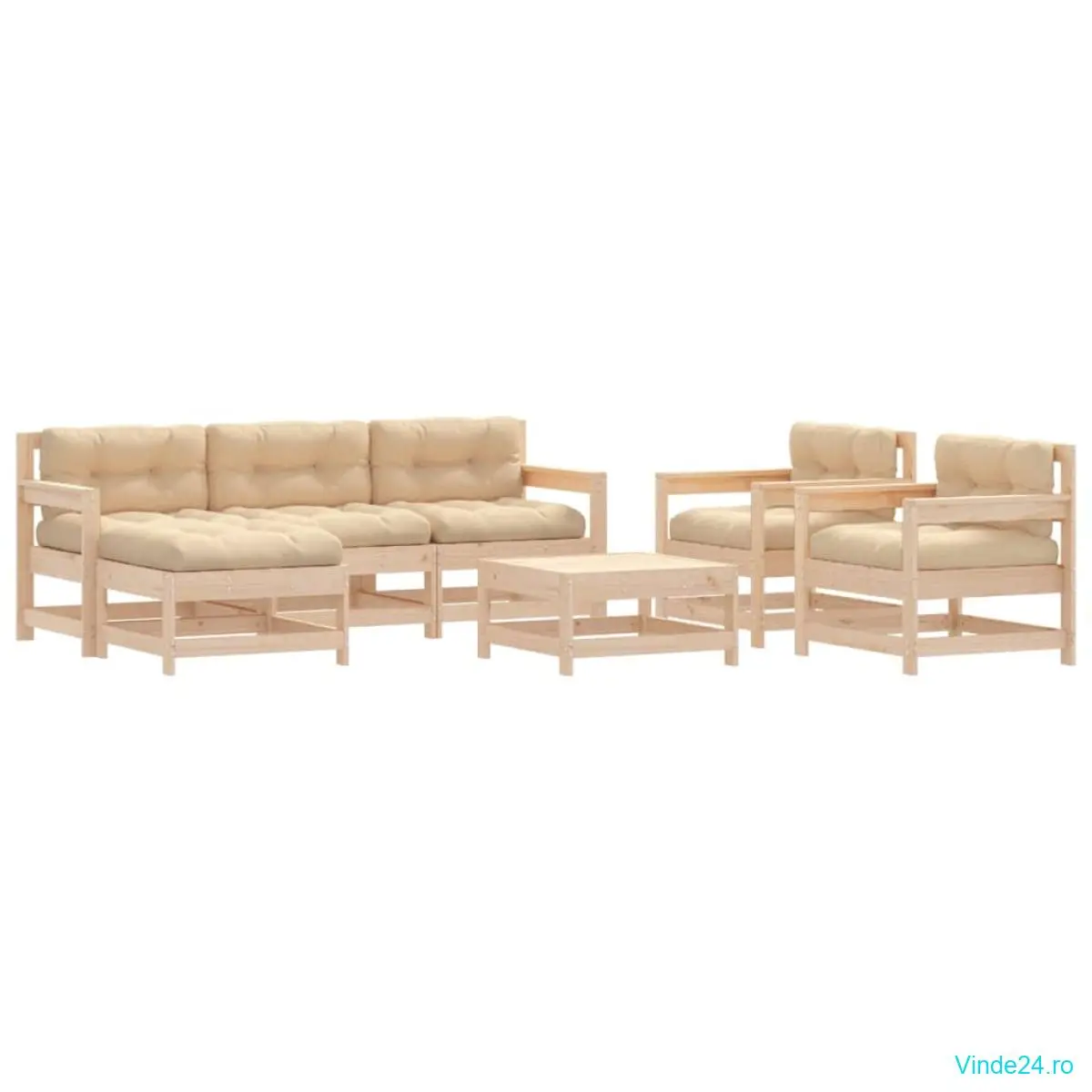 vidaXL Set mobilier de grădină cu perne, 7 piese, lemn masiv