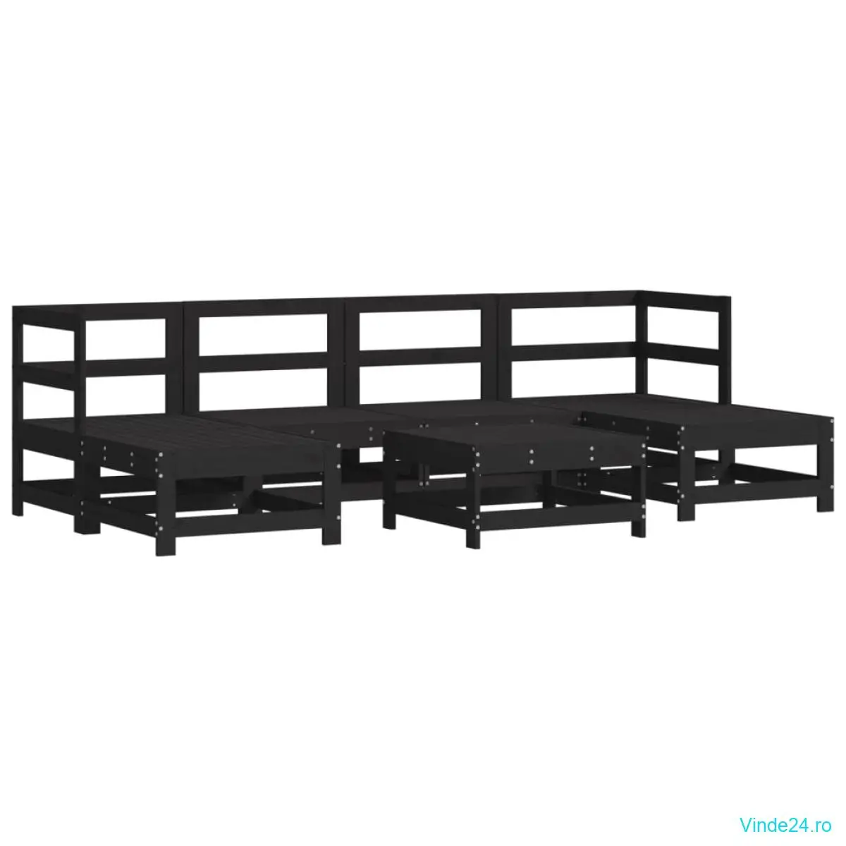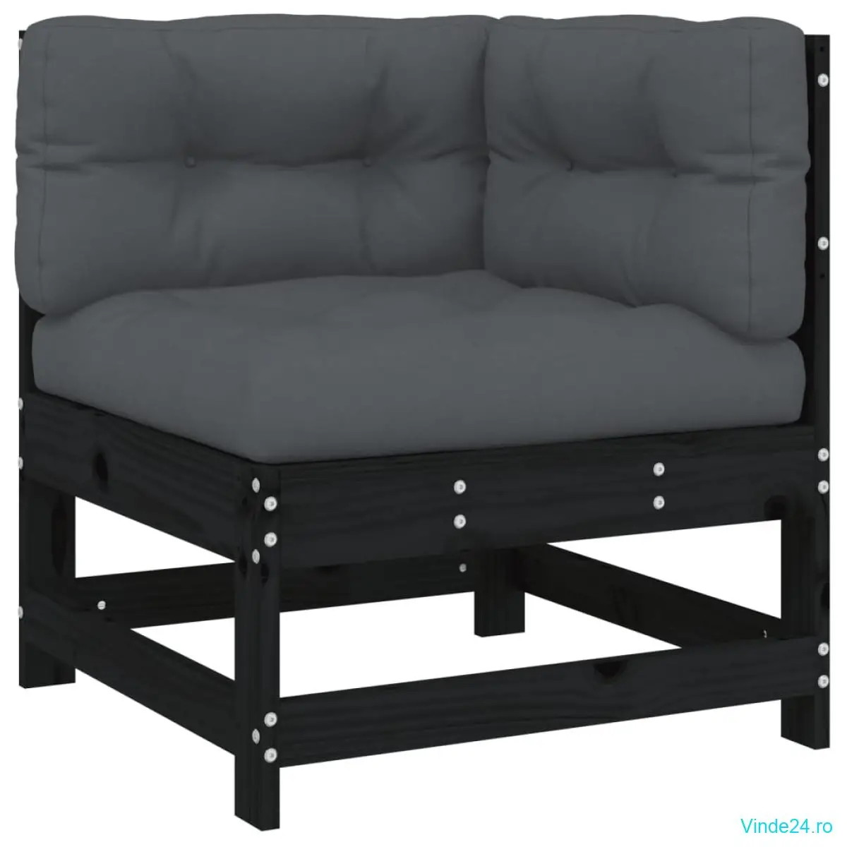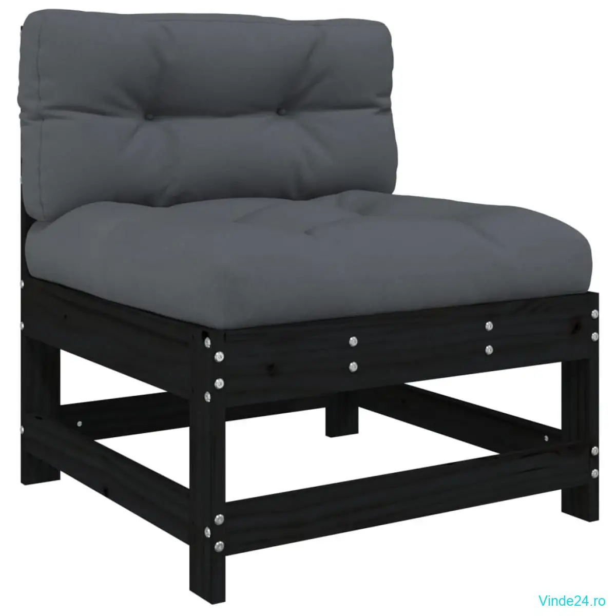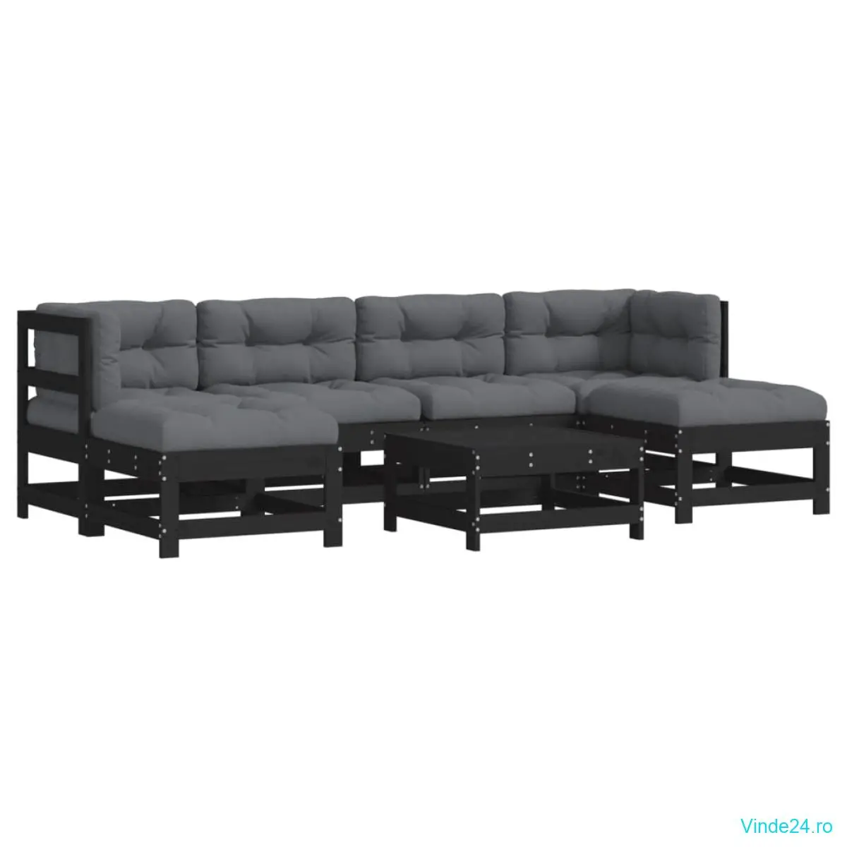 vidaXL Set mobilier de grădină cu perne, 7 piese, negru, lemn masiv