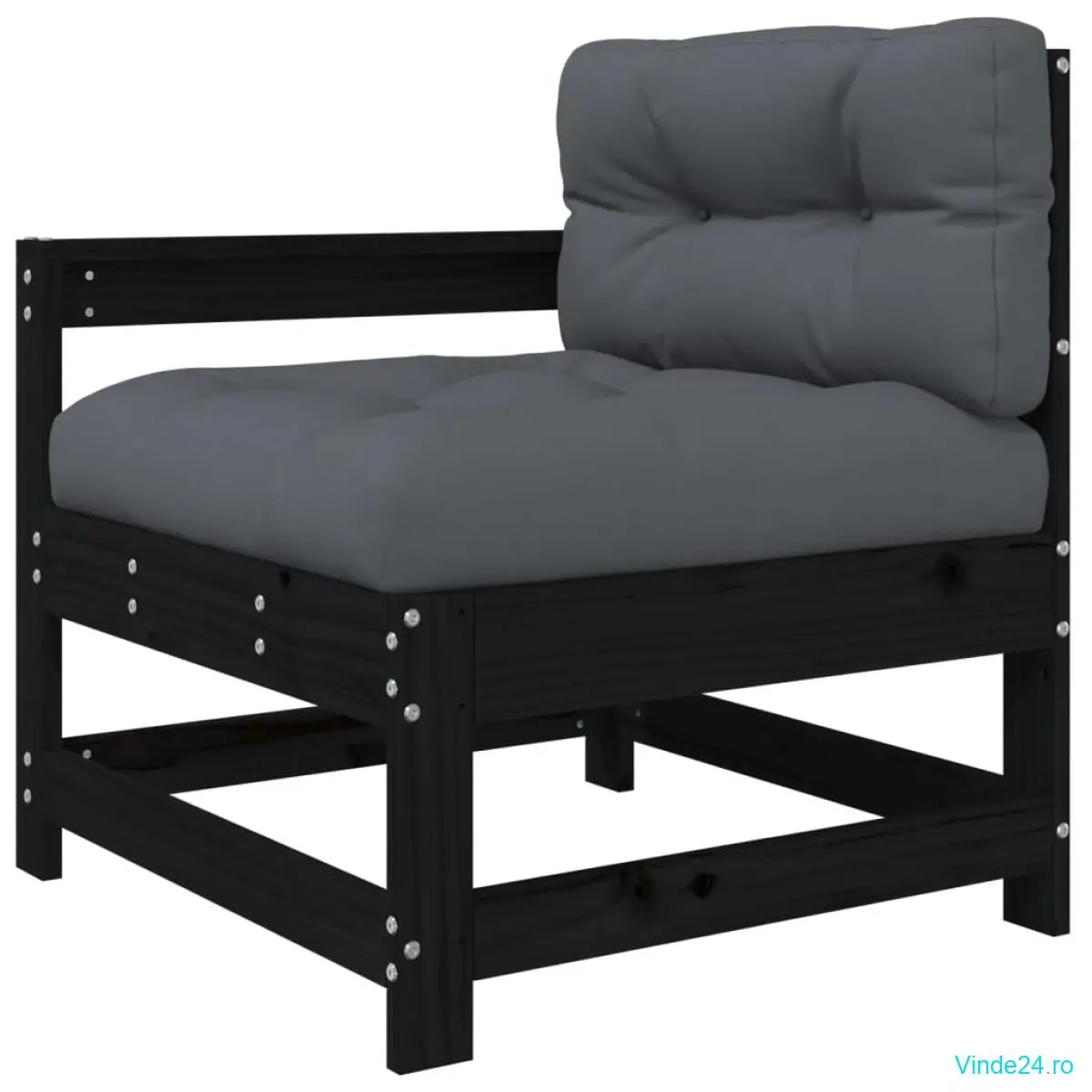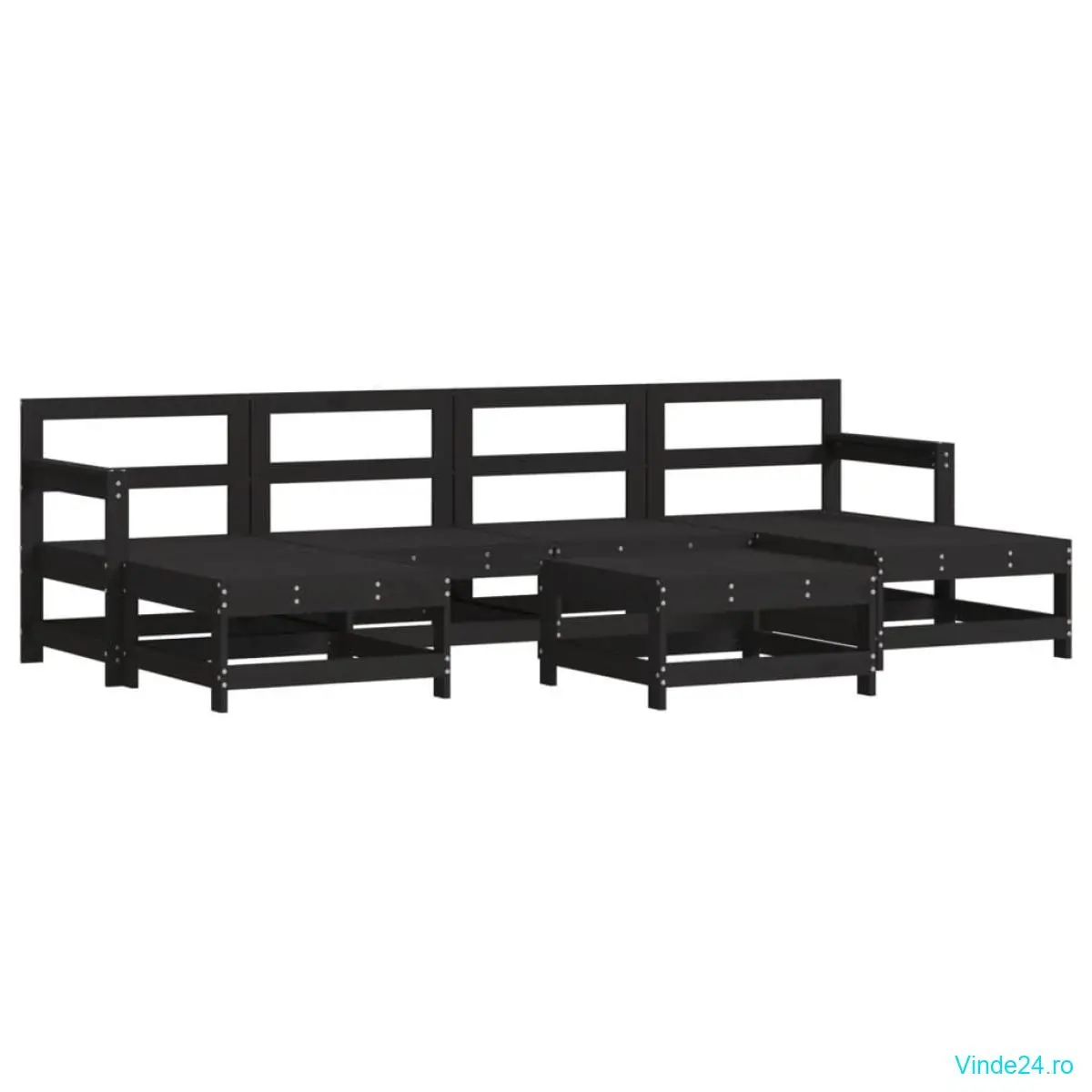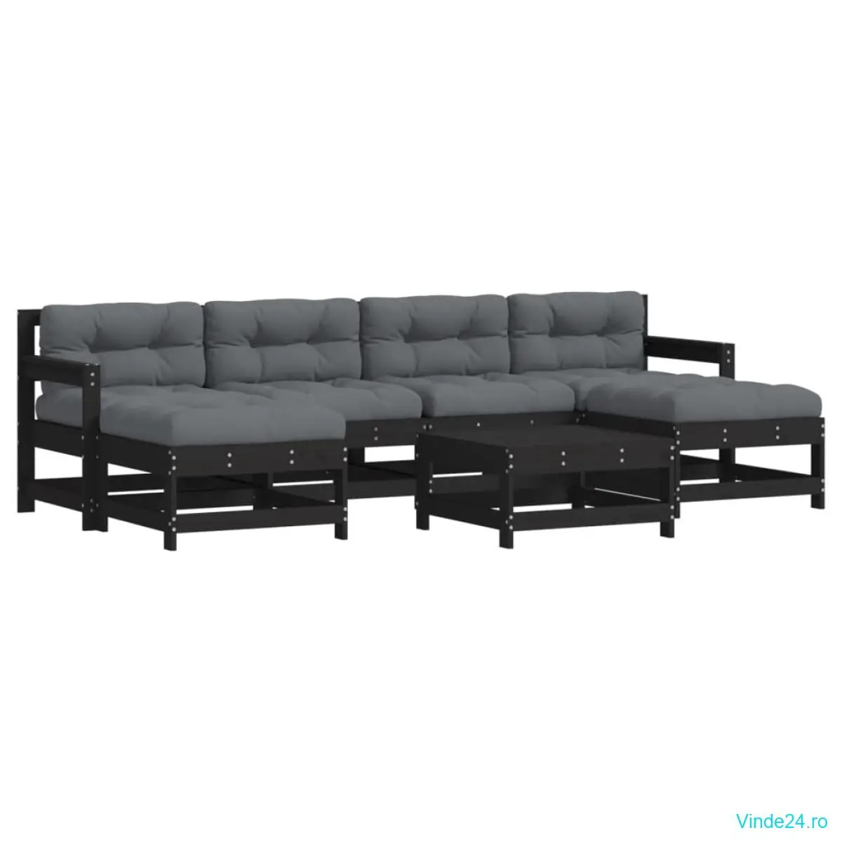 vidaXL Set mobilier de grădină cu perne, 7 piese, negru, lemn masiv
