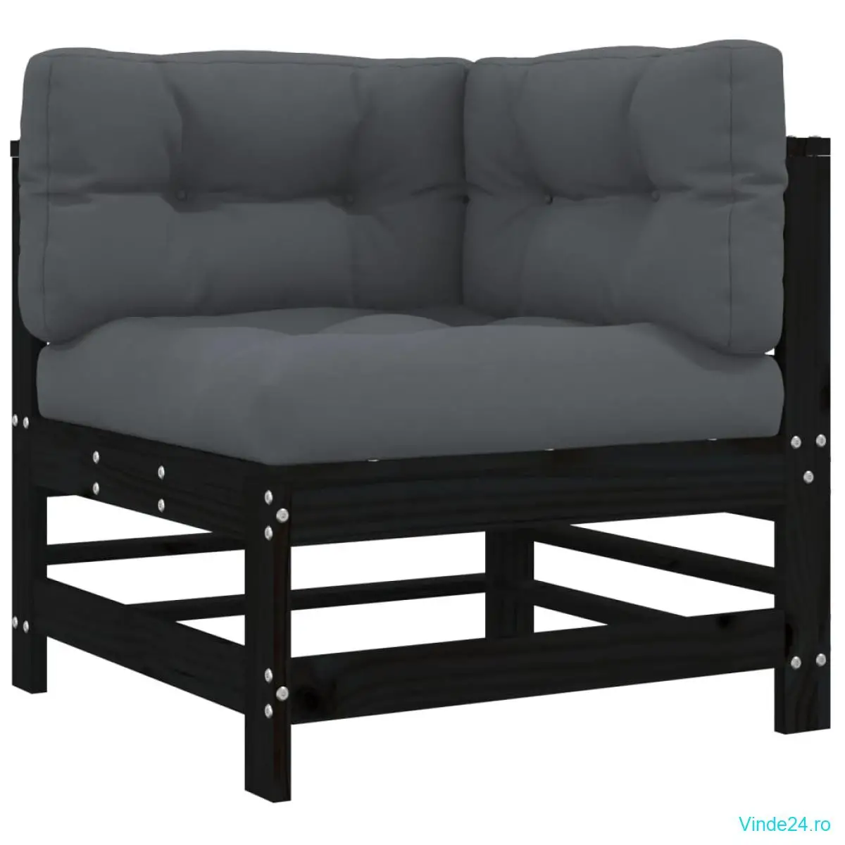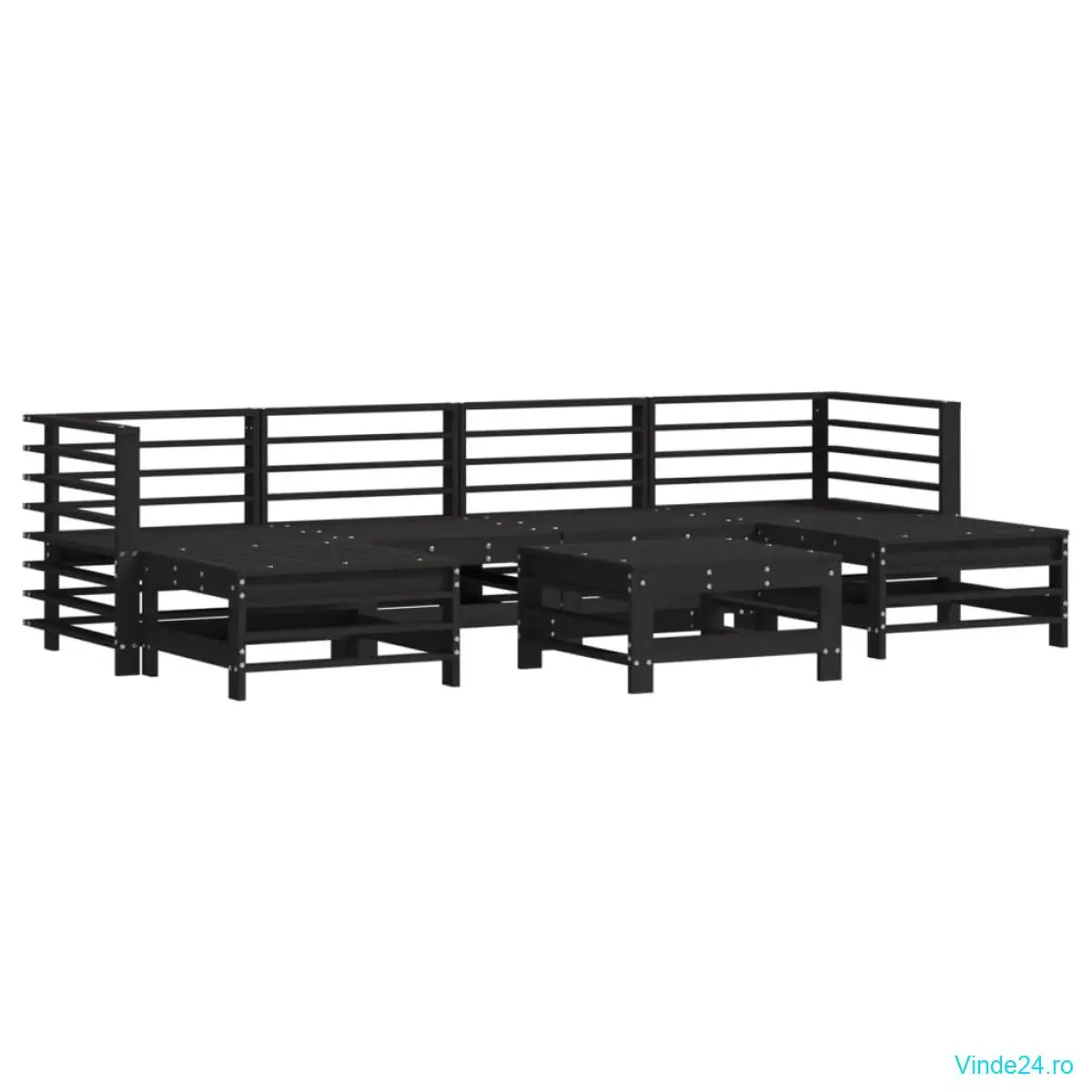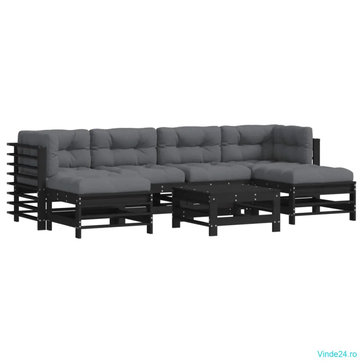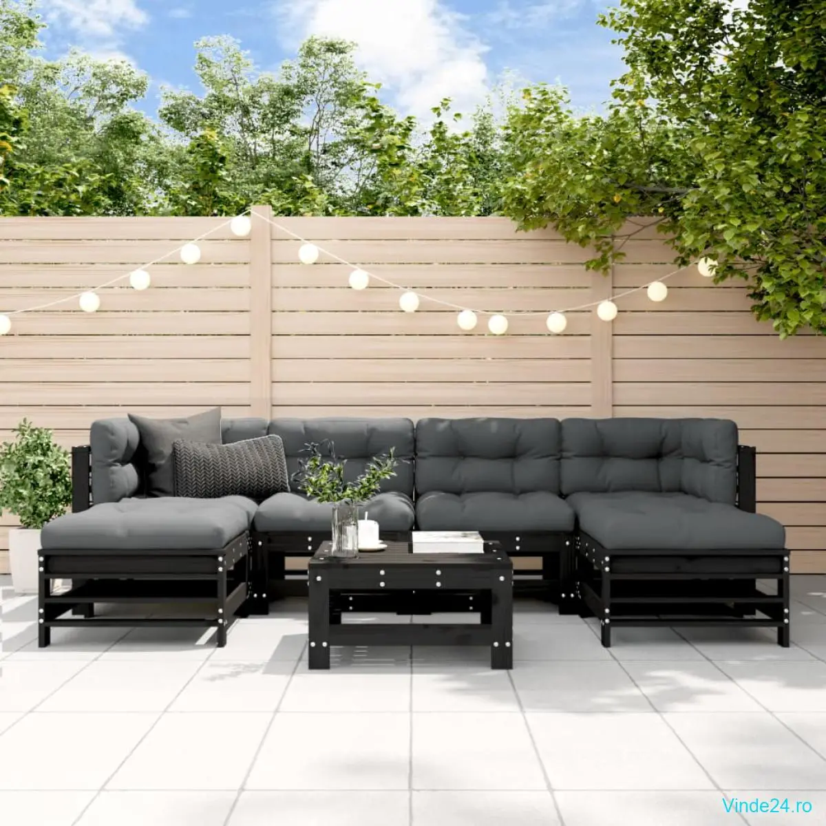 vidaXL Set mobilier de grădină cu perne, 7 piese, negru, lemn masiv