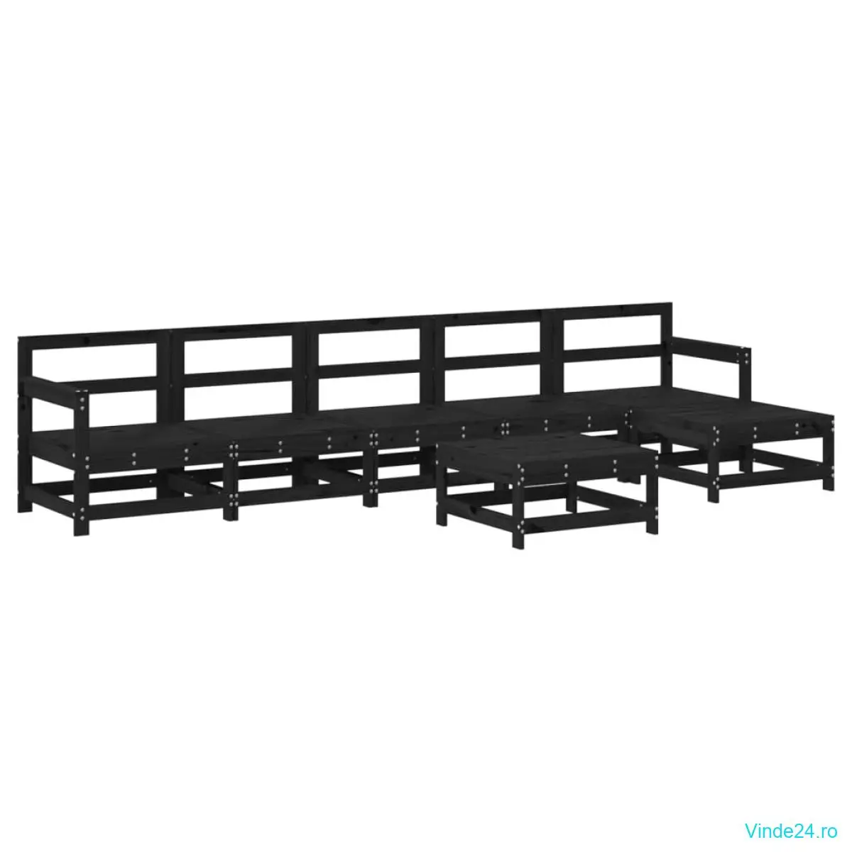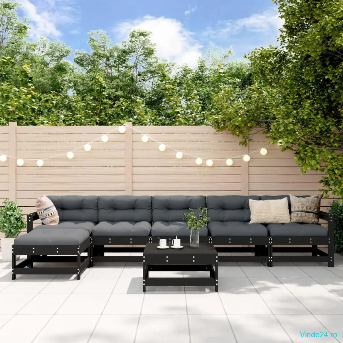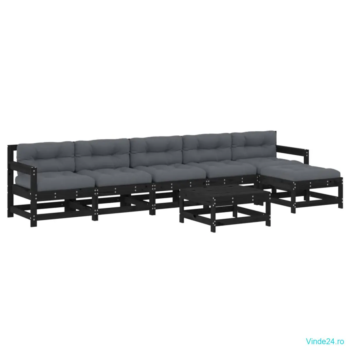vidaXL Set mobilier de grădină cu perne, 7 piese, negru, lemn masiv