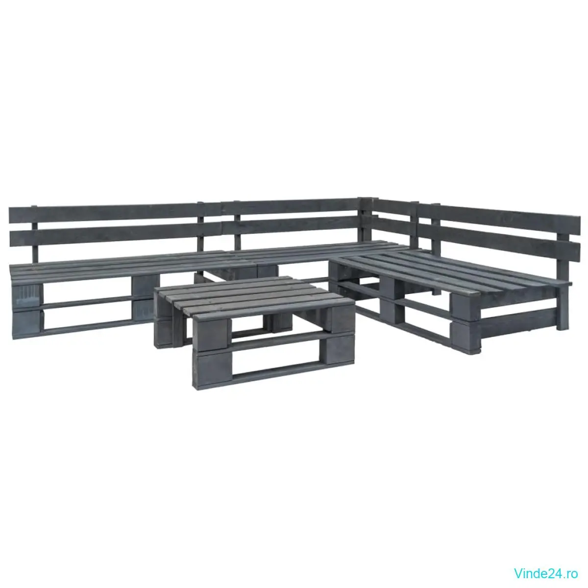 vidaXL Set mobilier de grădină din paleți, 4 piese, gri, lemn