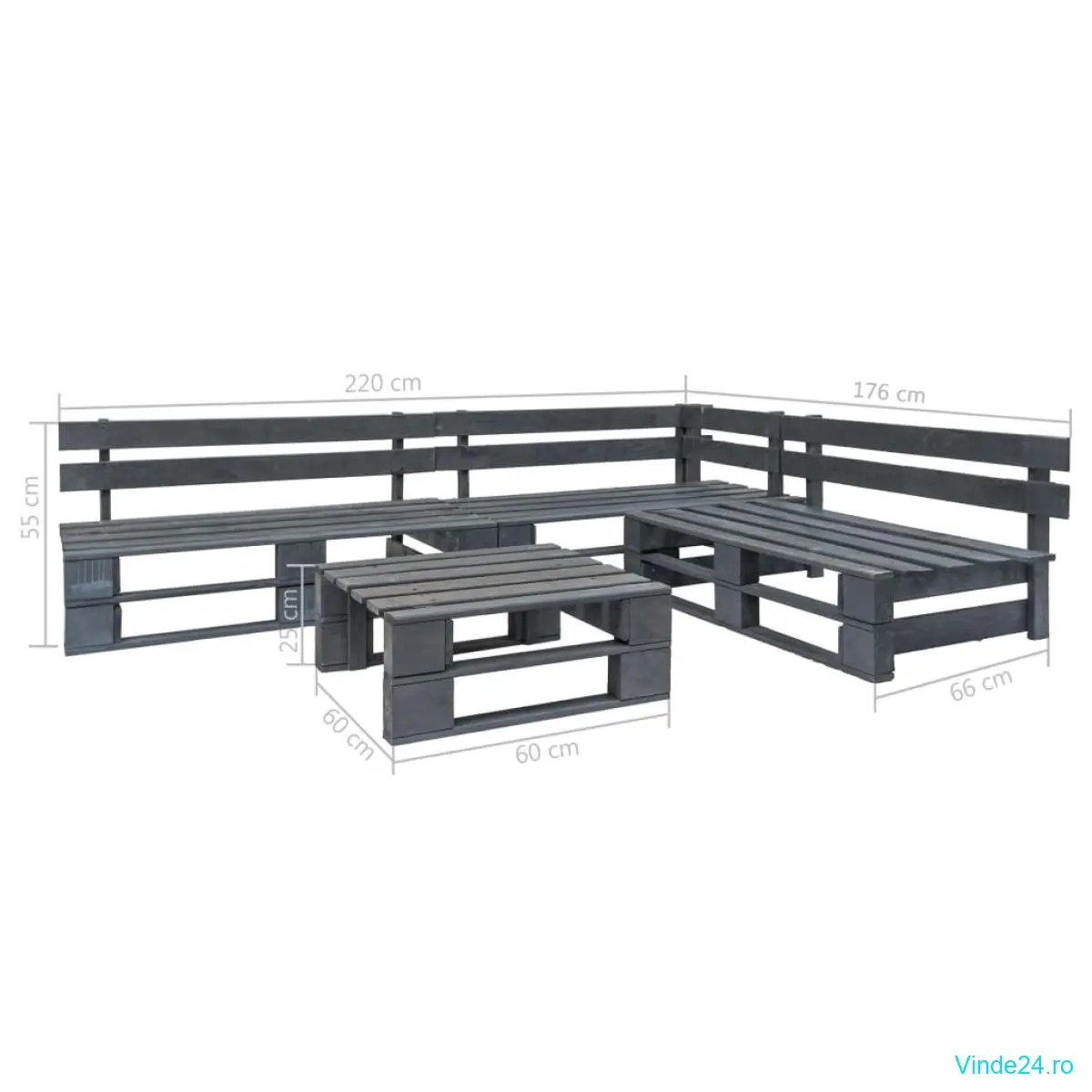 • Dimensiuni set mobilier: 220 x 176 x 55 cm (l x ad. x î)