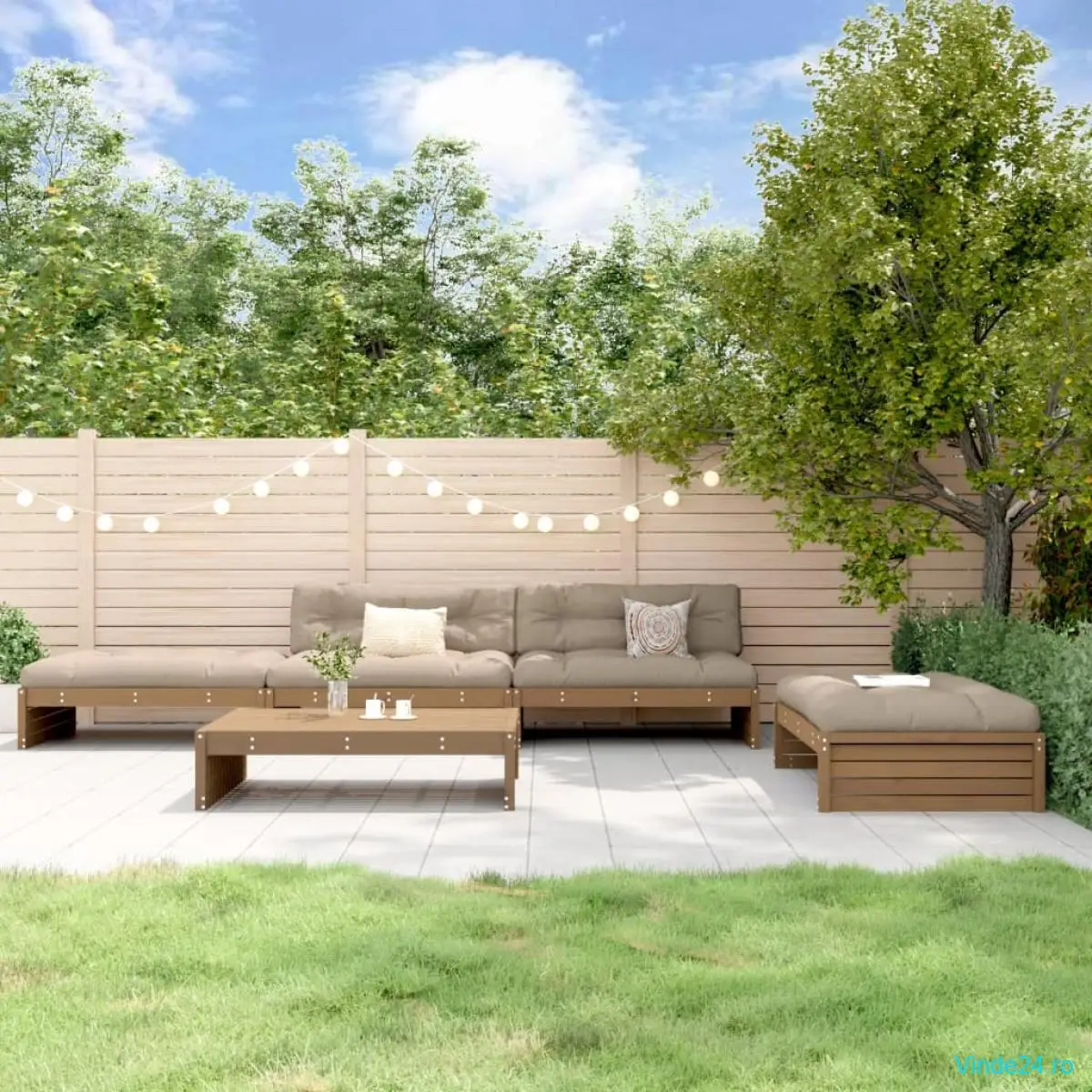 vidaXL Set mobilier grădină cu perne, 6 piese, maro miere, lemn masiv