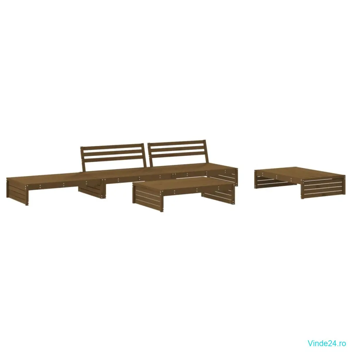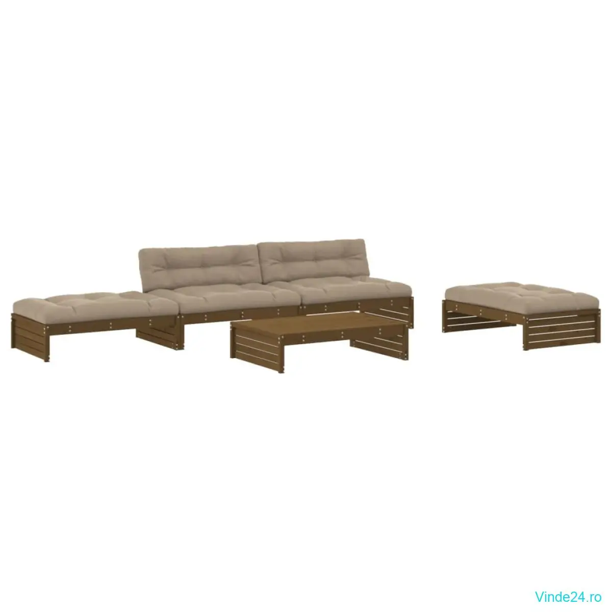 vidaXL Set mobilier grădină cu perne, 5 piese, maro miere, lemn masiv