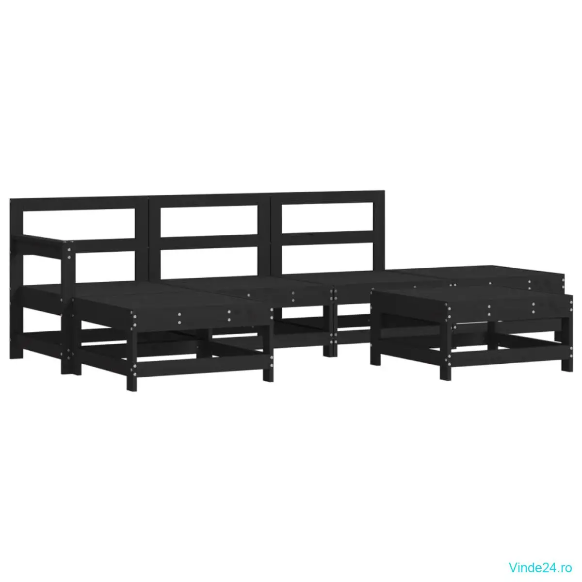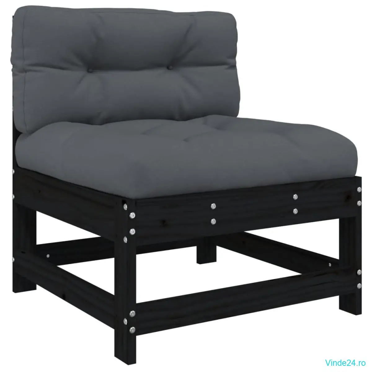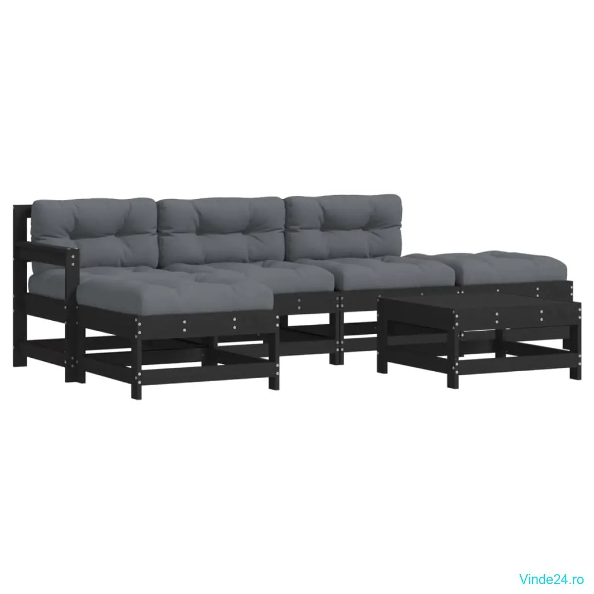 vidaXL Set mobilier grădină cu perne, 6 piese, negru, lemn masiv