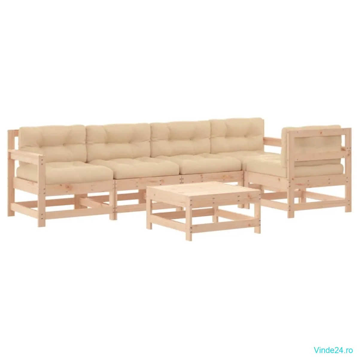 vidaXL Set mobilier relaxare de grădină & perne 6 piese lemn masiv pin