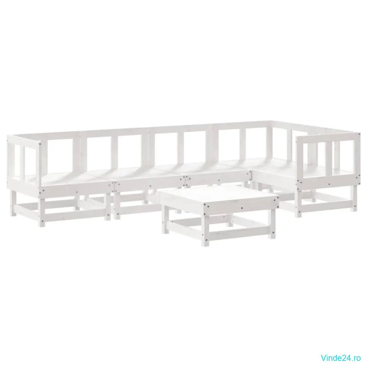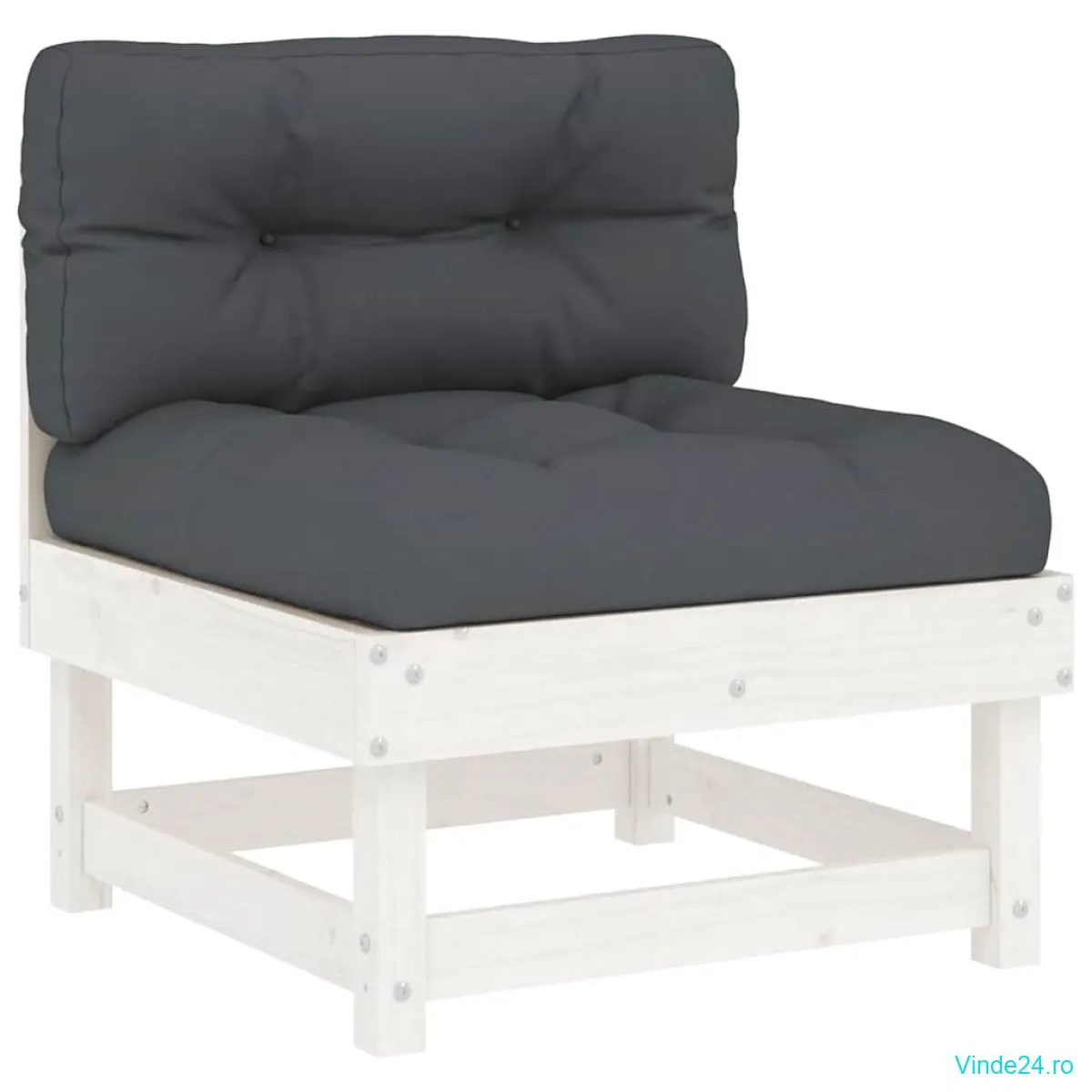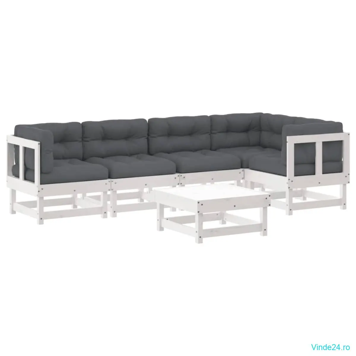 vidaXL Set mobilier relaxare grădină&perne 6 piese alb lemn masiv pin