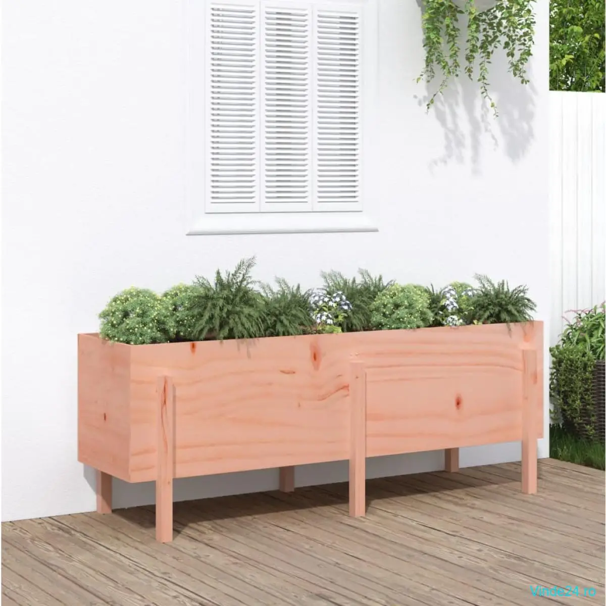 - Lemn masiv Douglas: Acest strat de grădină este realizat din lemn masiv Douglas pentru durabilitate. Lemnul Douglas este, de asemenea, suficient de rezistent pentru a avea nevoie de îngrijire minimă, chiar și sub influența intemperiilor.