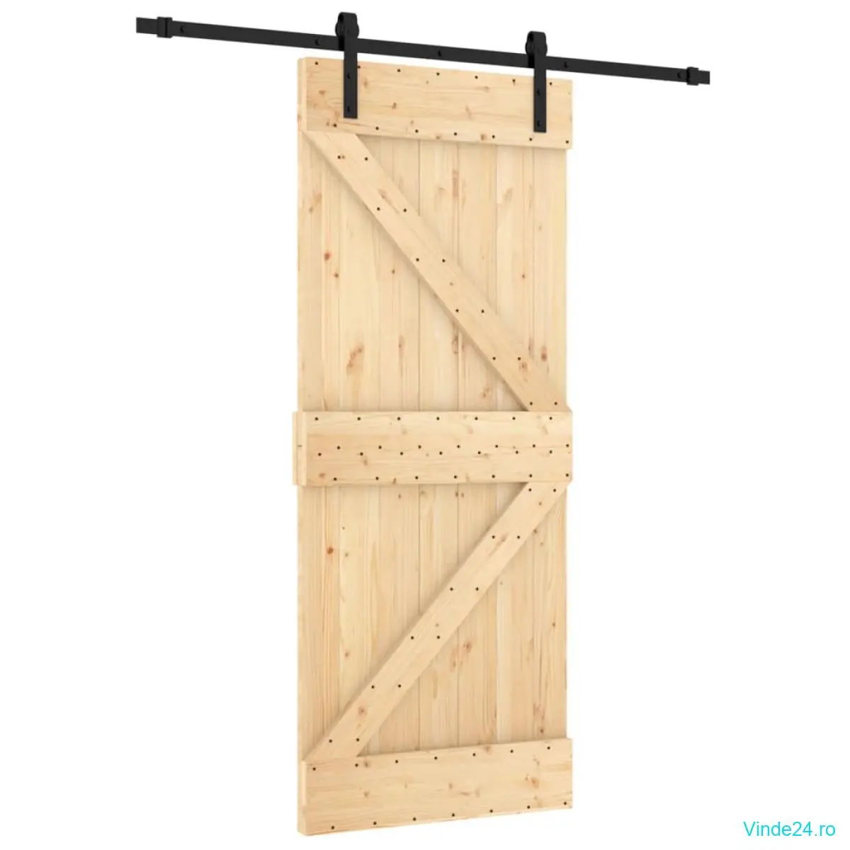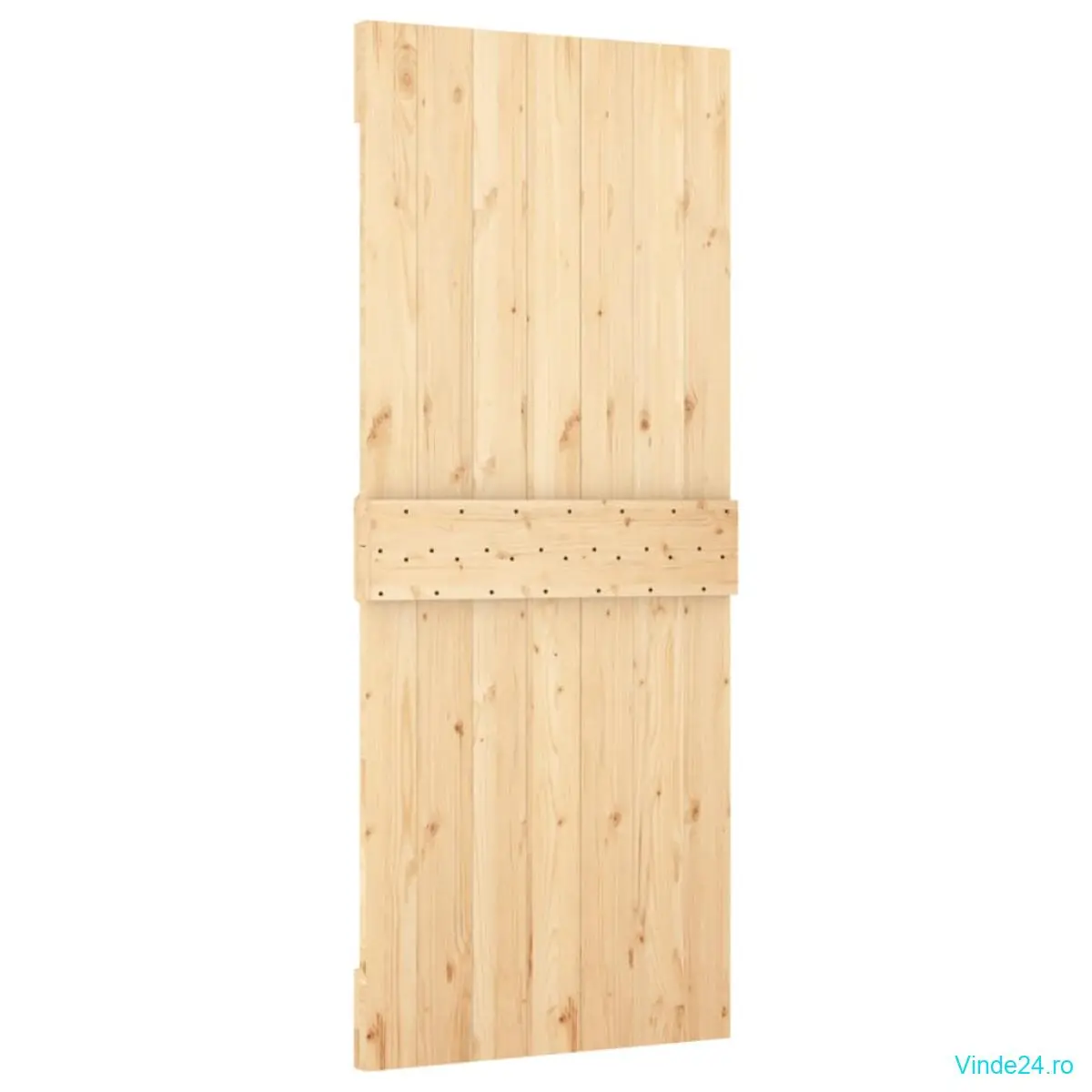 - Lemn masiv de pin: Această ușă de interior este realizată din lemn masiv de pin. Lemnul masiv de pin este un material natural frumos. Lemnul de pin are o granulație plană, iar nodurile conferă materialului unicitate și un aspect rustic.