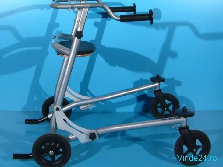 Cadrul de mers cu roti pliabil sustine exercitiile terapeutice pentru a invata miscarile naturale si dezvoltarea echilibrului.