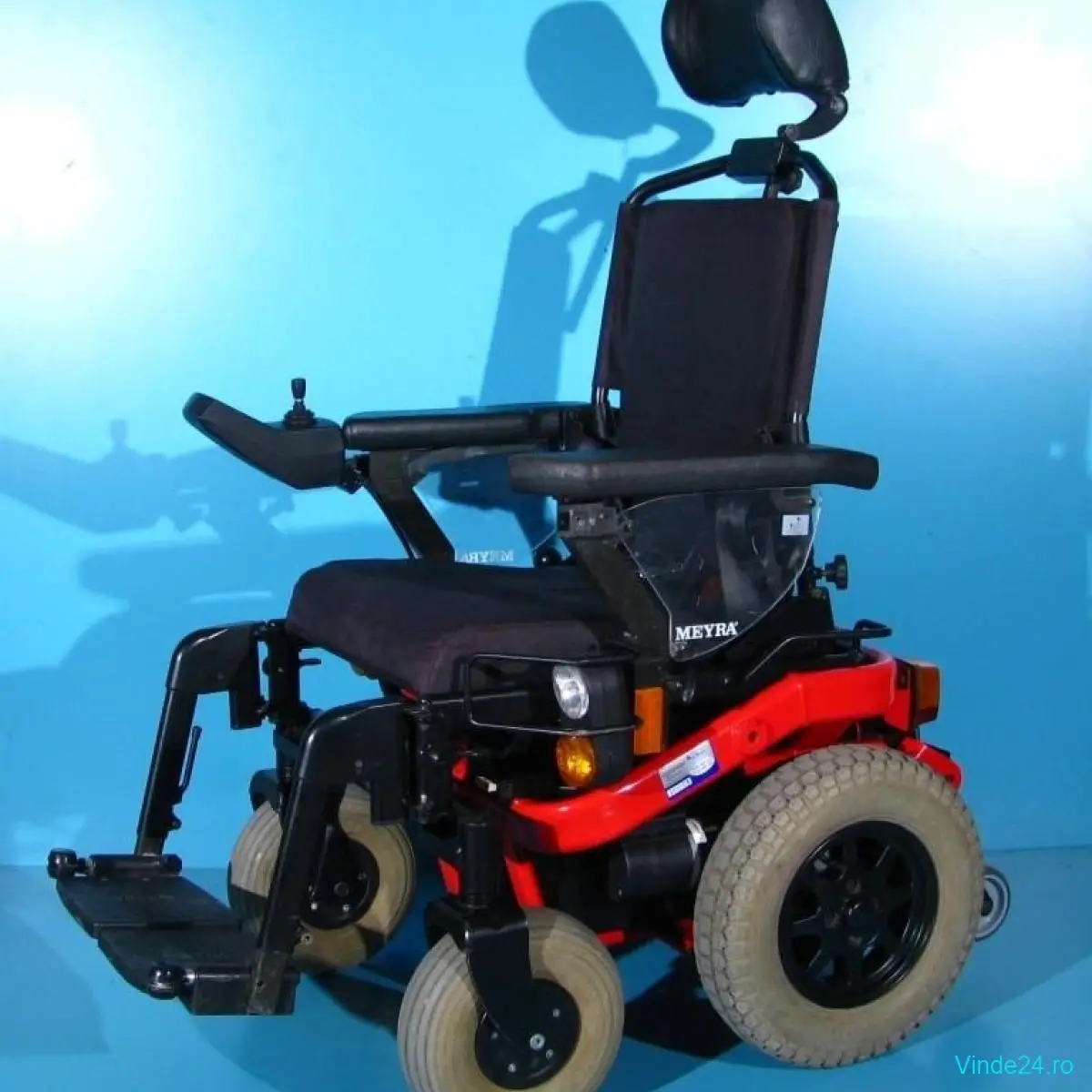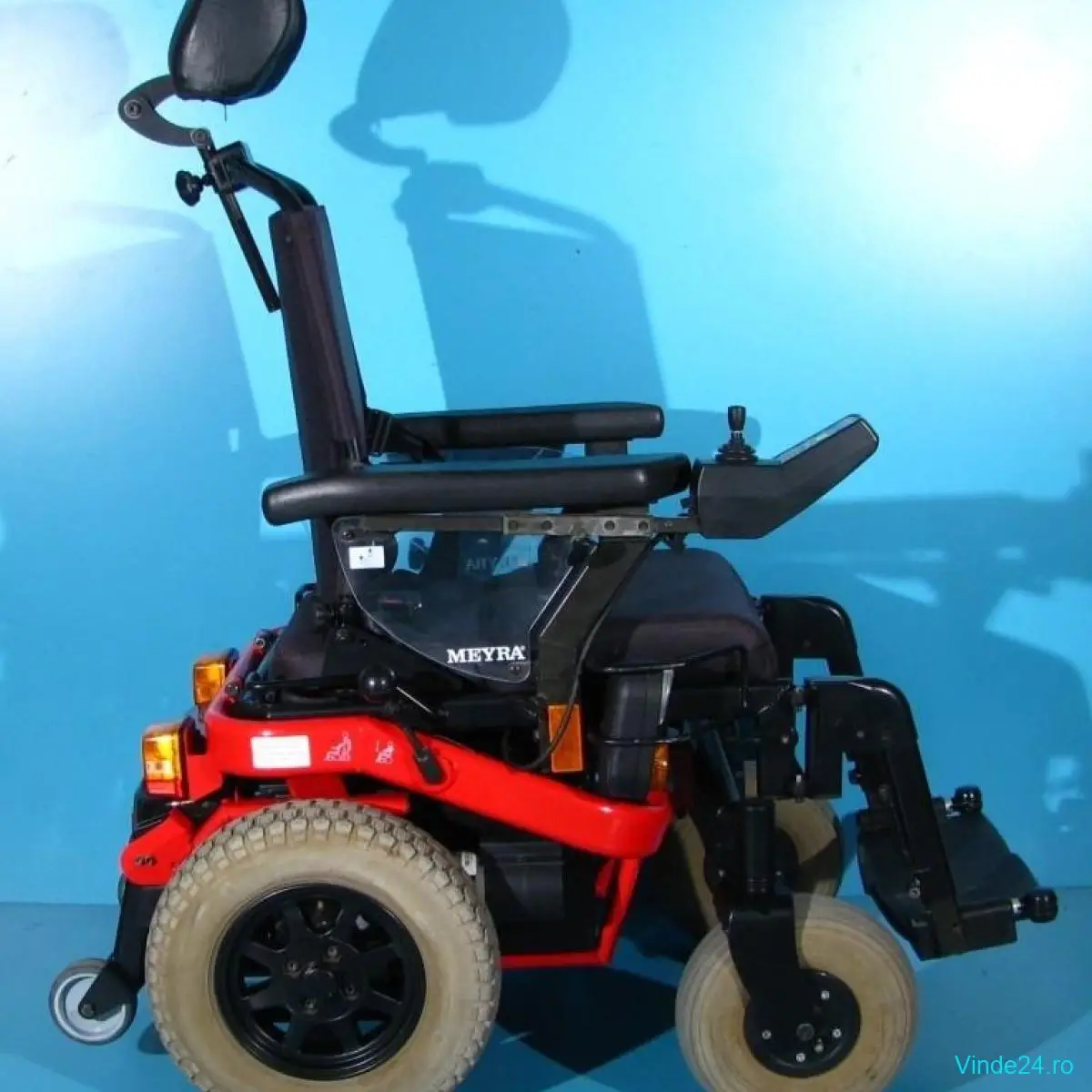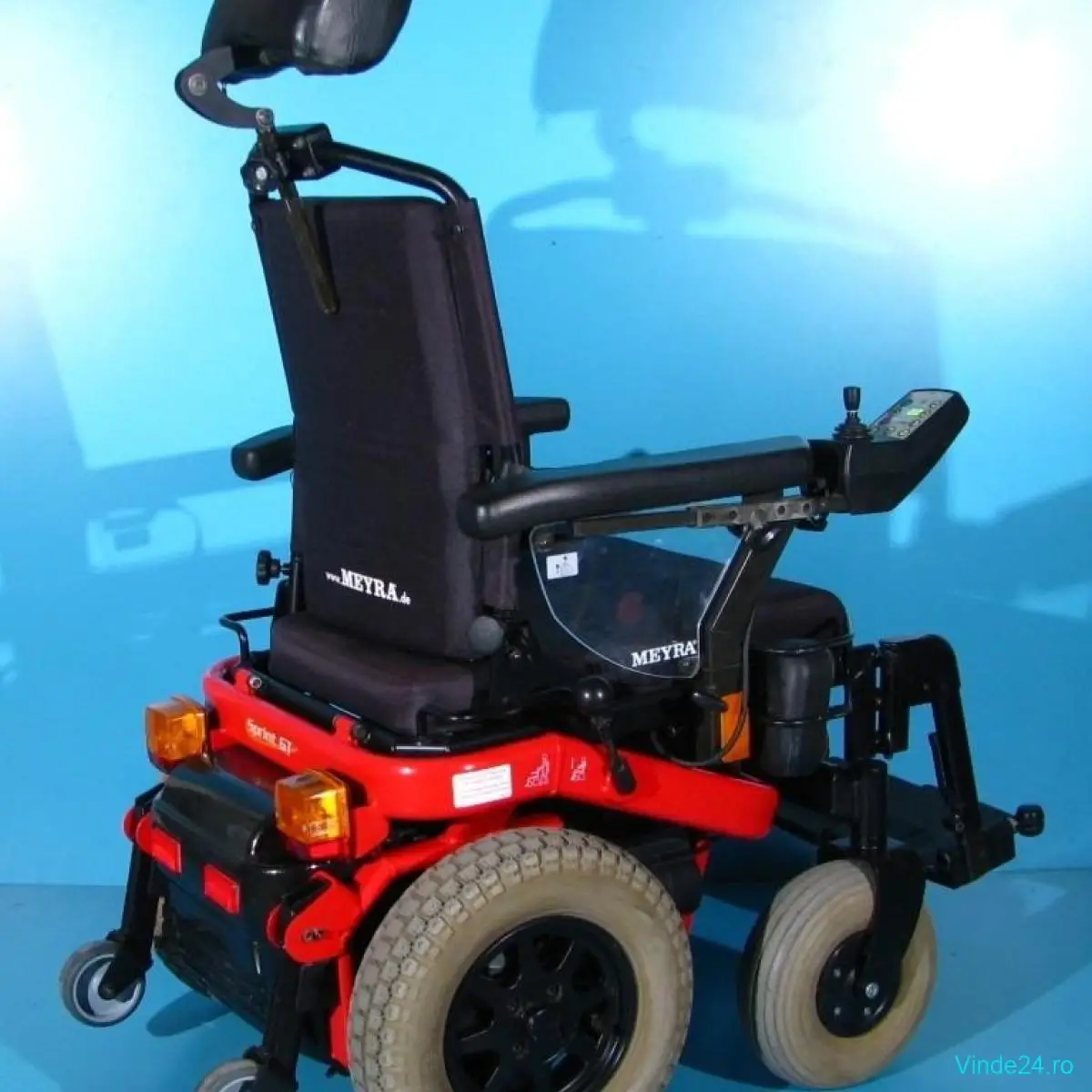 Scaun cu rotile second hand cu comanda pe joystick destinat persoanelor cu handicap si persoanelor cu deficiente locomotorii.