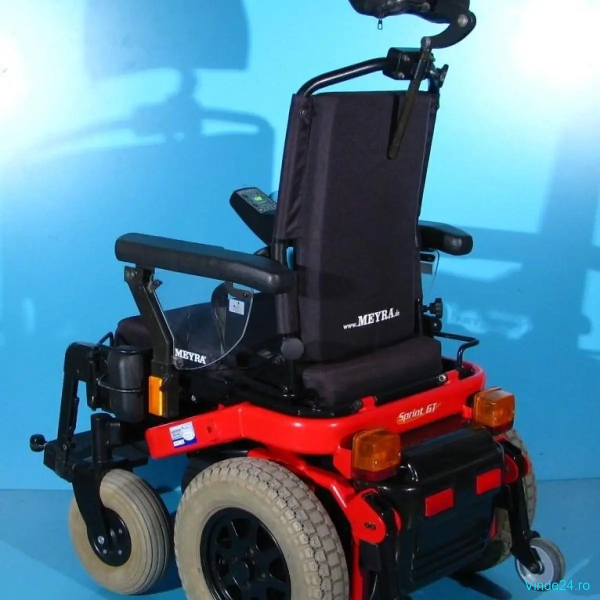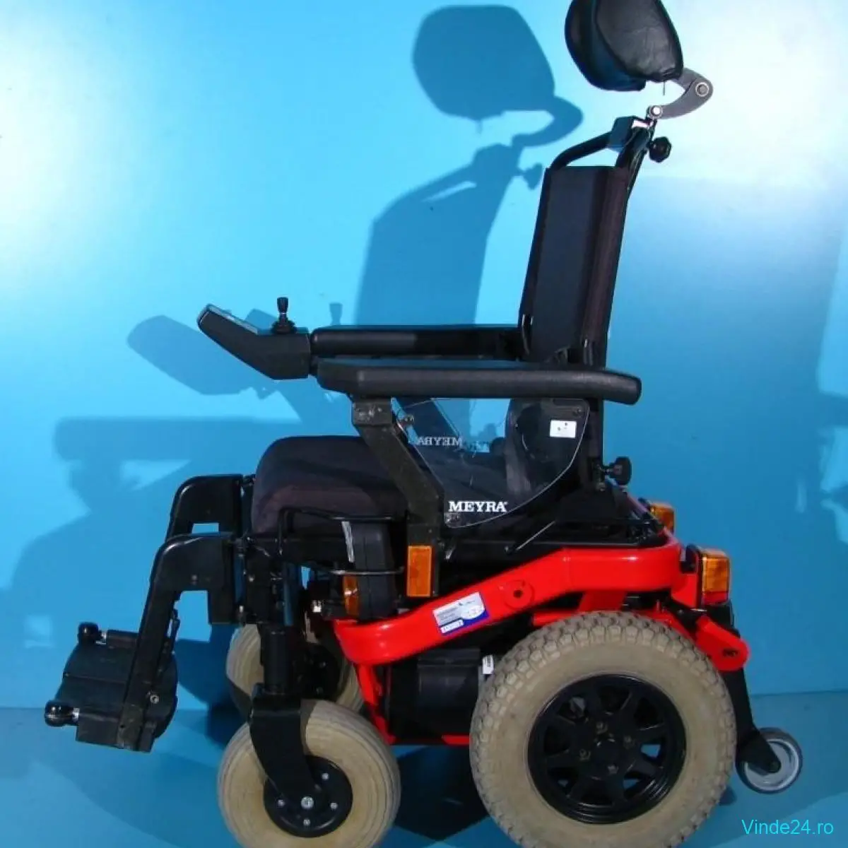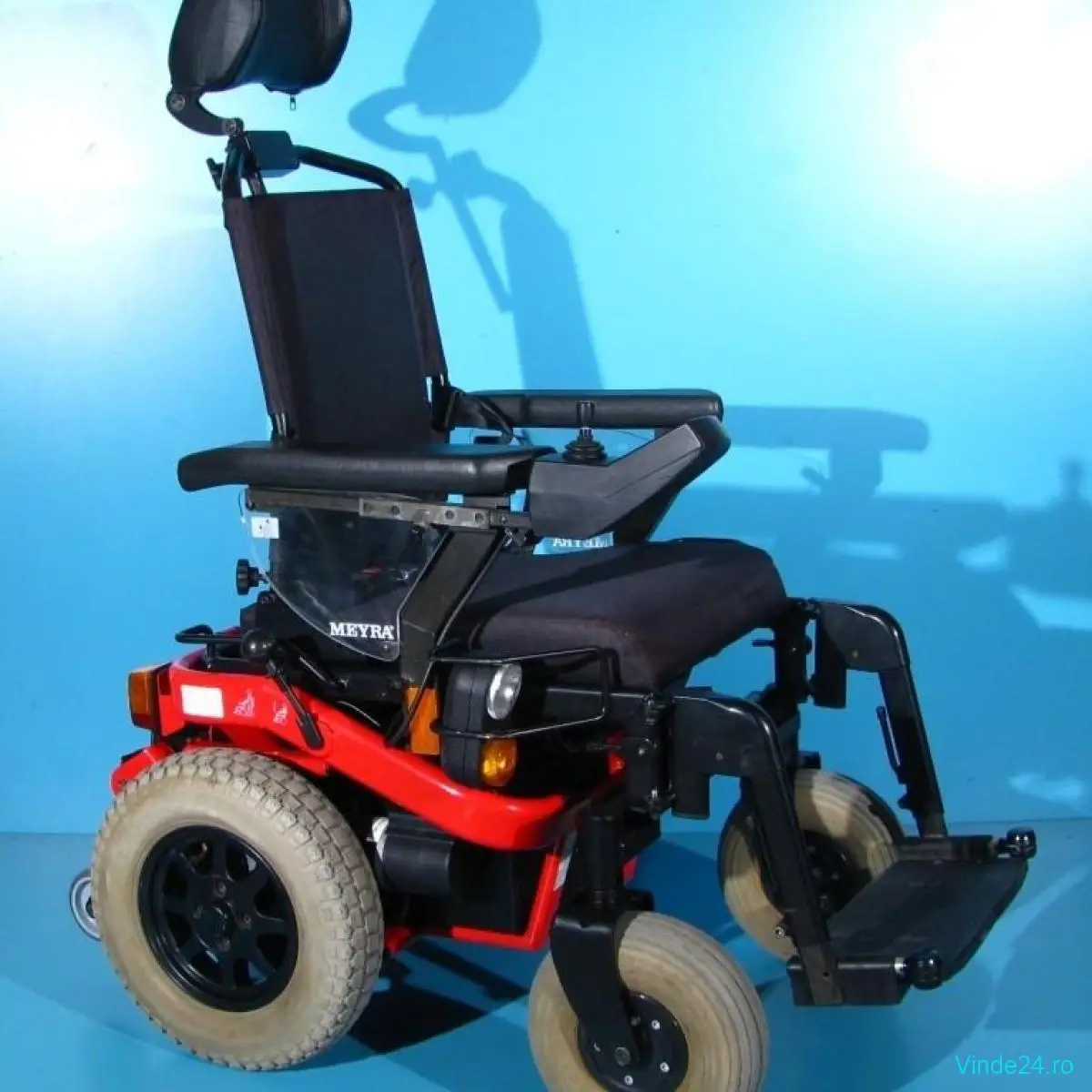 Scaun cu rotile second hand cu comanda pe joystick destinat persoanelor cu handicap si persoanelor cu deficiente locomotorii.