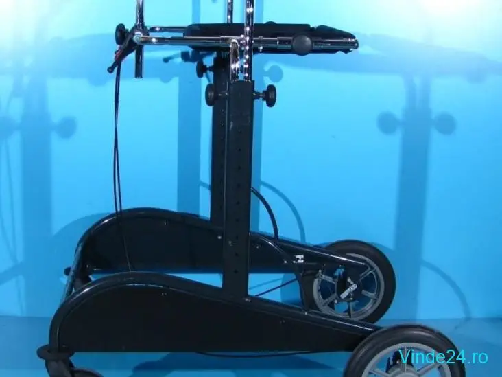 Produsul este dotat cu frana de mana ce actioneaza rotile din spate.