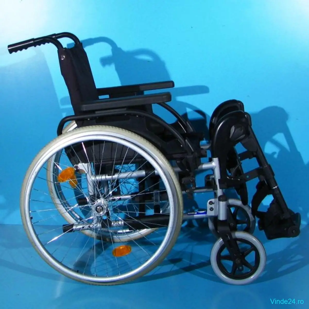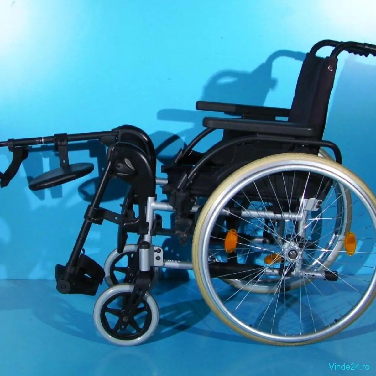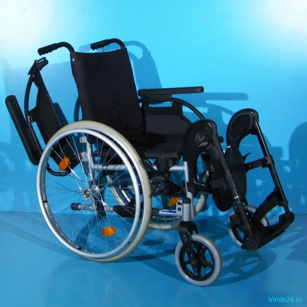 Carucior handicap second hand pliabil cu detasare rapida a rotilor, destinat deplasarii persoanelor cu handicap locomotor, si cu mobilitate scazuta.