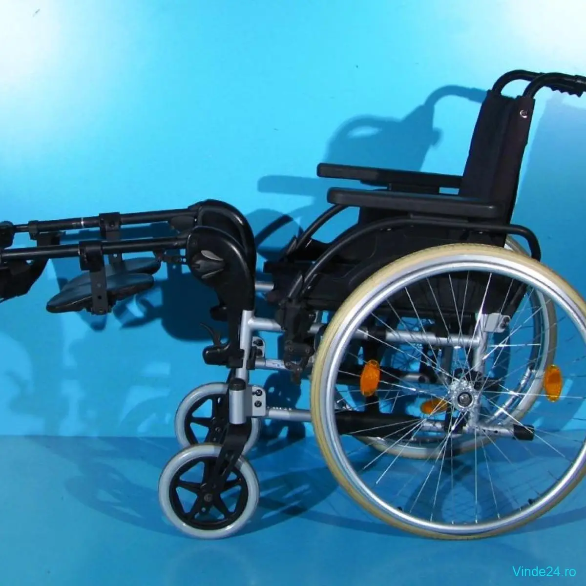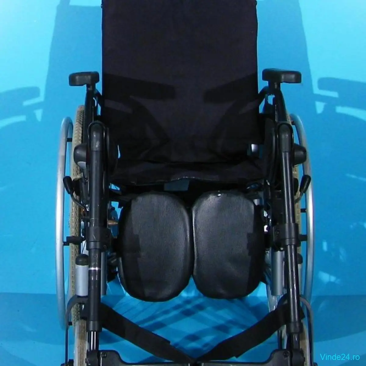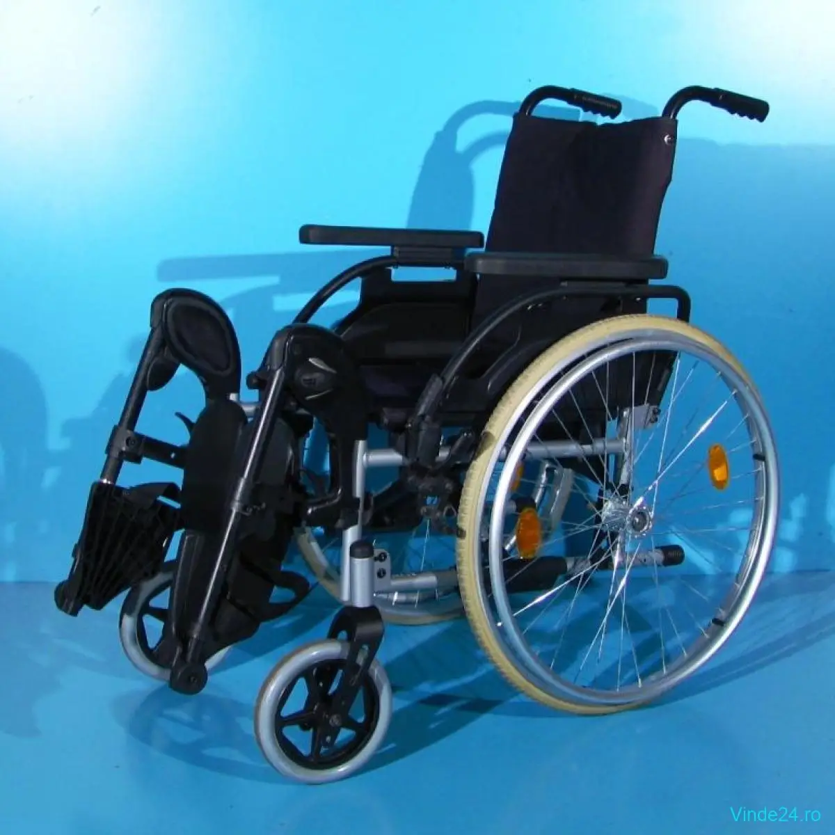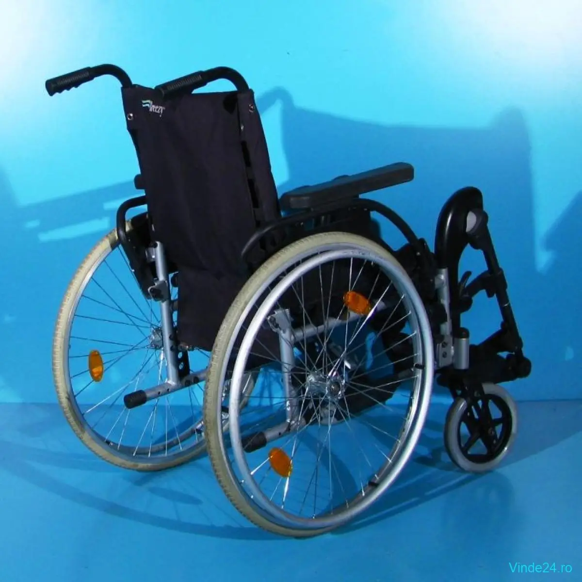 Carucior handicap second hand pliabil cu detasare rapida a rotilor, destinat deplasarii persoanelor cu handicap locomotor, si cu mobilitate scazuta.