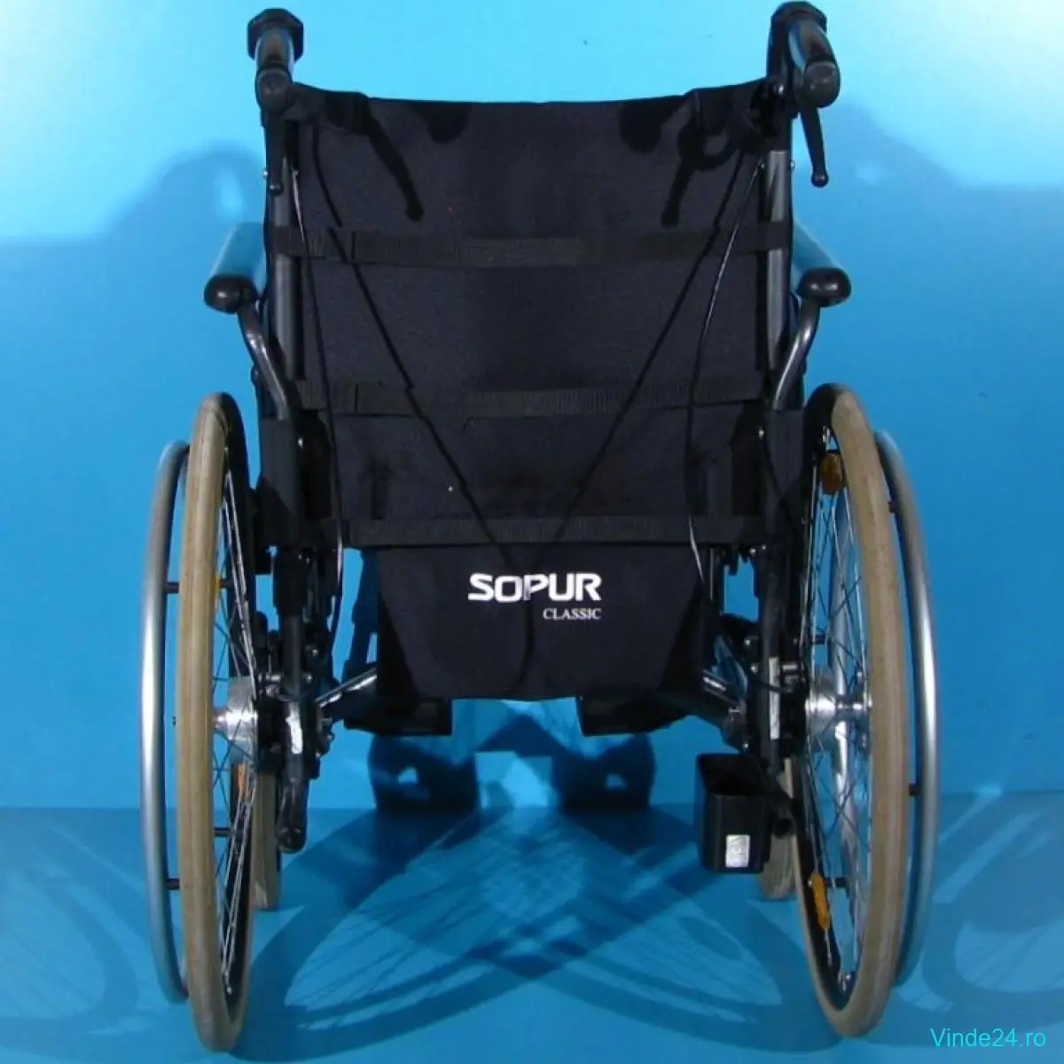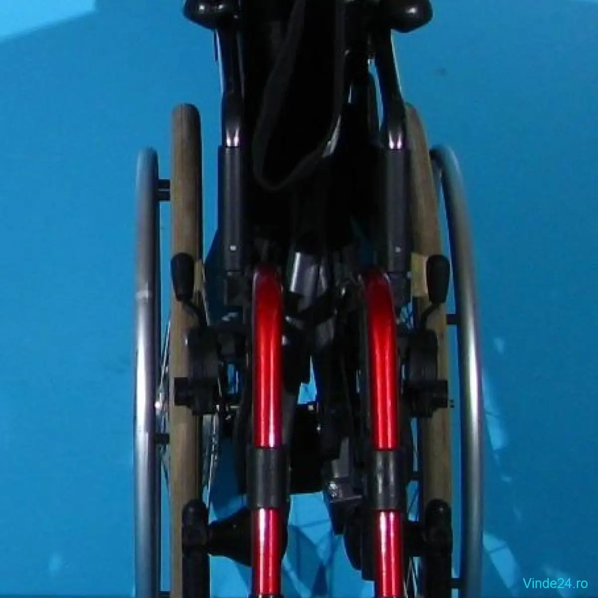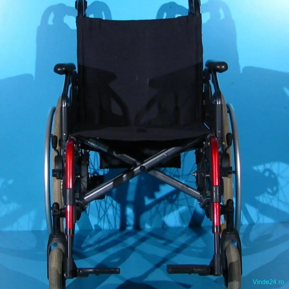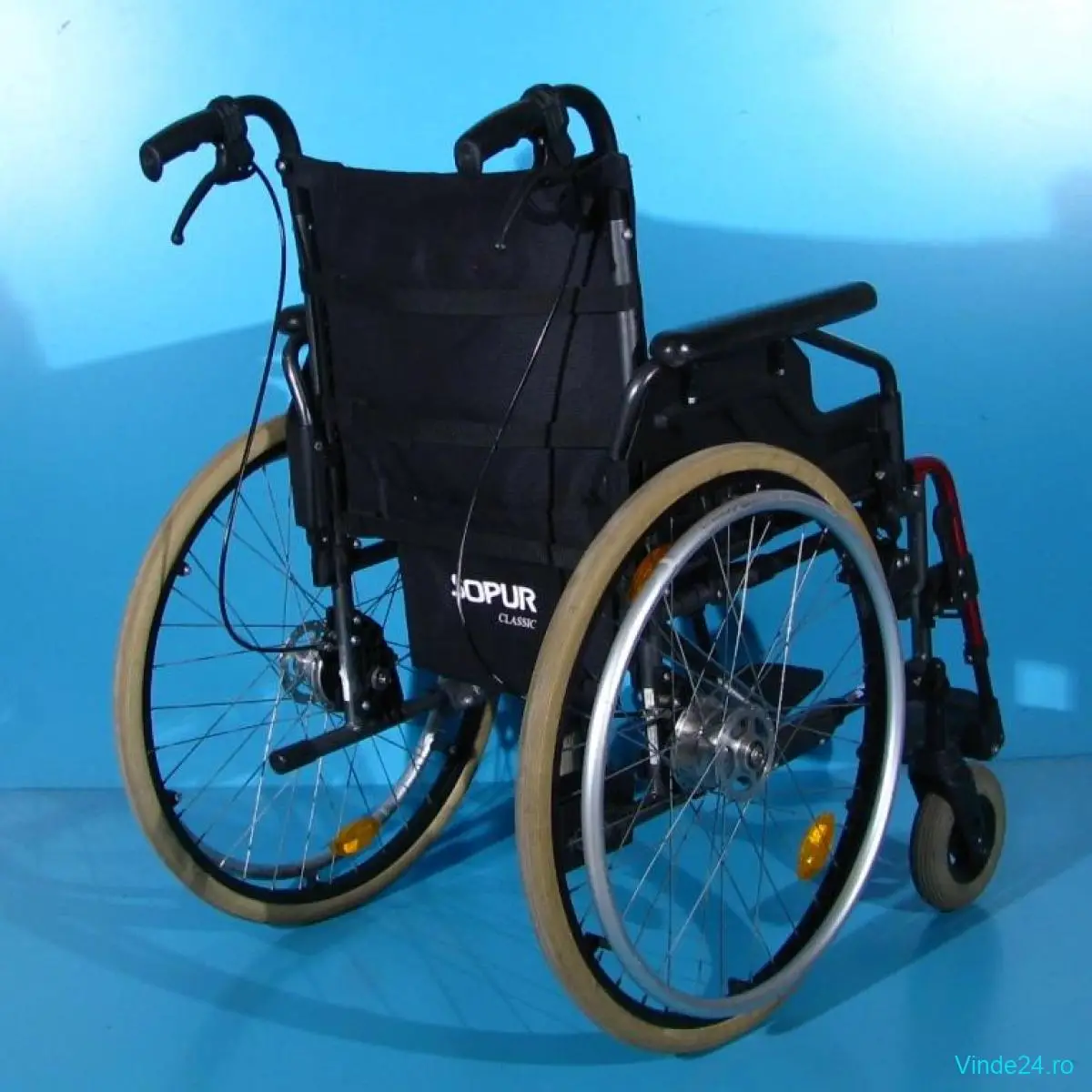 Carucior handicap second hand pliabil cu detasare rapida a rotilor, destinat deplasarii persoanelor cu handicap locomotor, si cu mobilitate scazuta.
