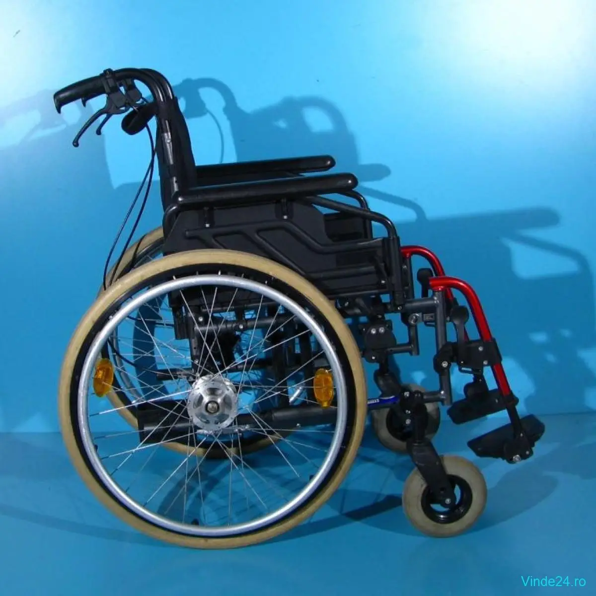 Scaunul are frane pentru pacient cat si pentru insotitor.