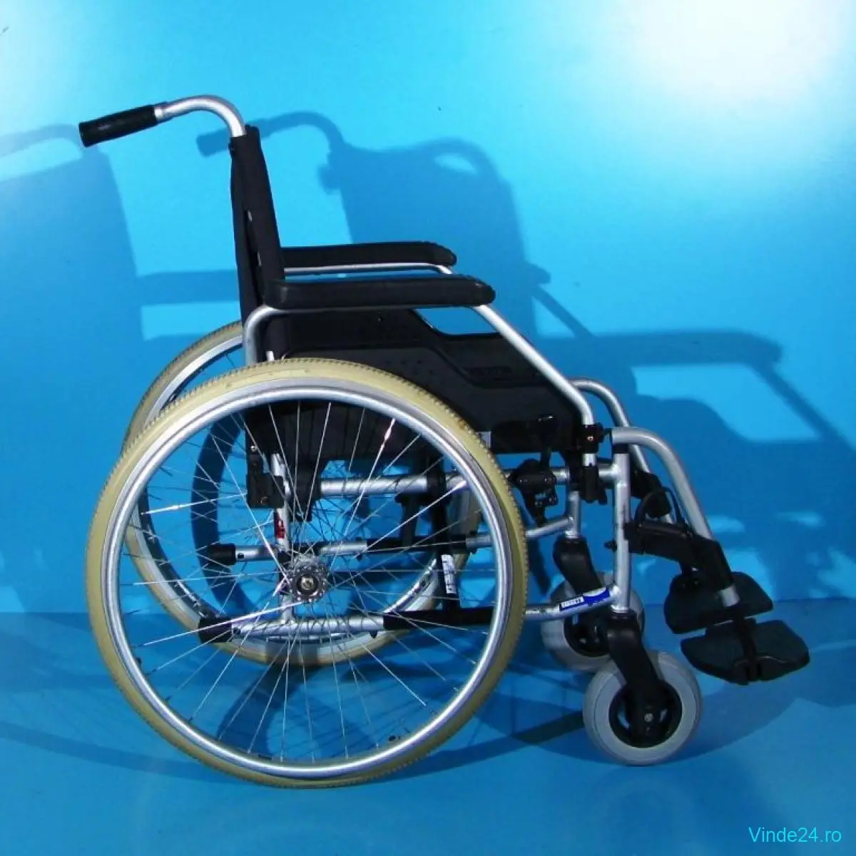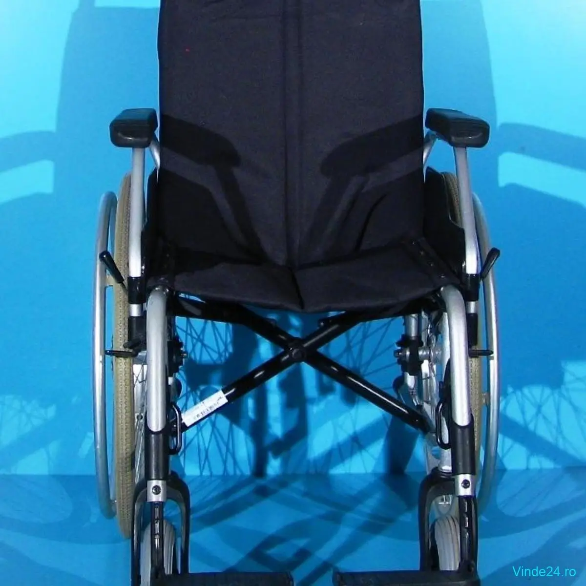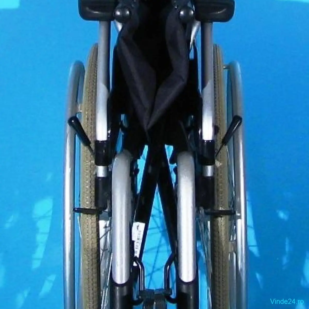 Carucior handicap second-hand, pliabil, cu detașarea rapidă a roților, destinat persoanelor cu mobilitate redusă.