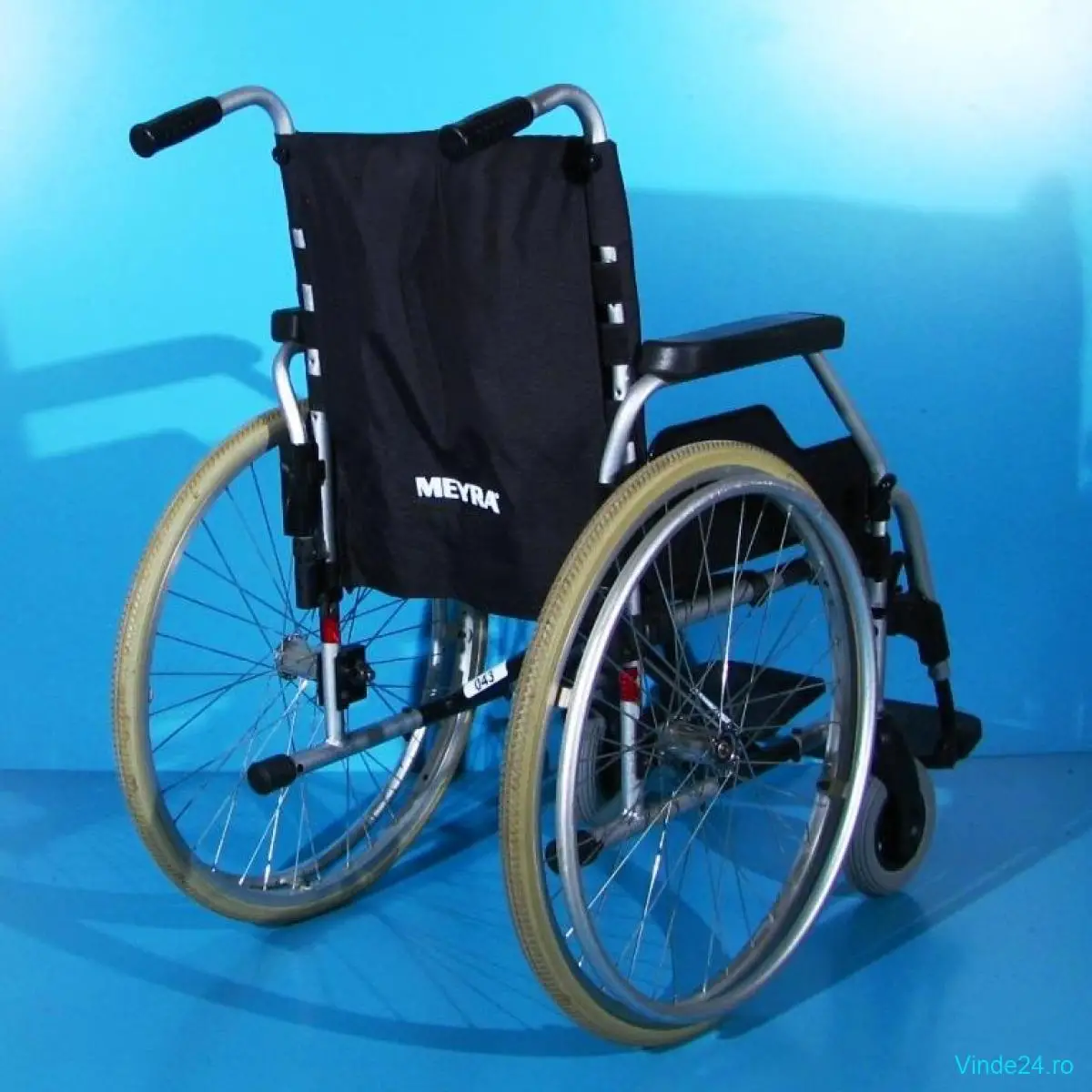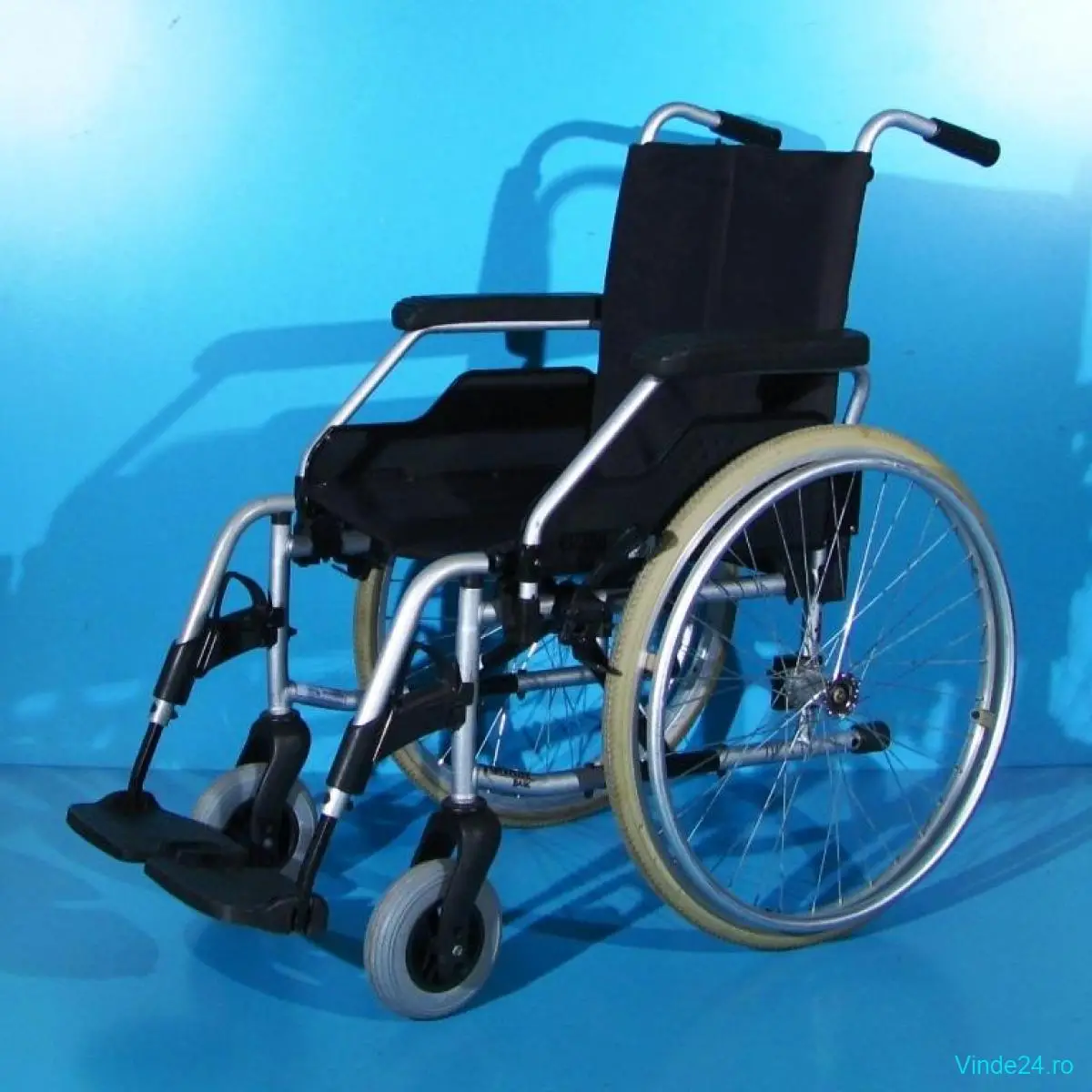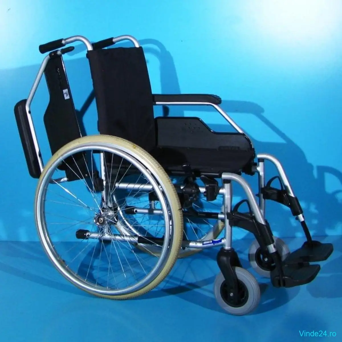 Carucior handicap second-hand, pliabil, cu detașarea rapidă a roților, destinat persoanelor cu mobilitate redusă.