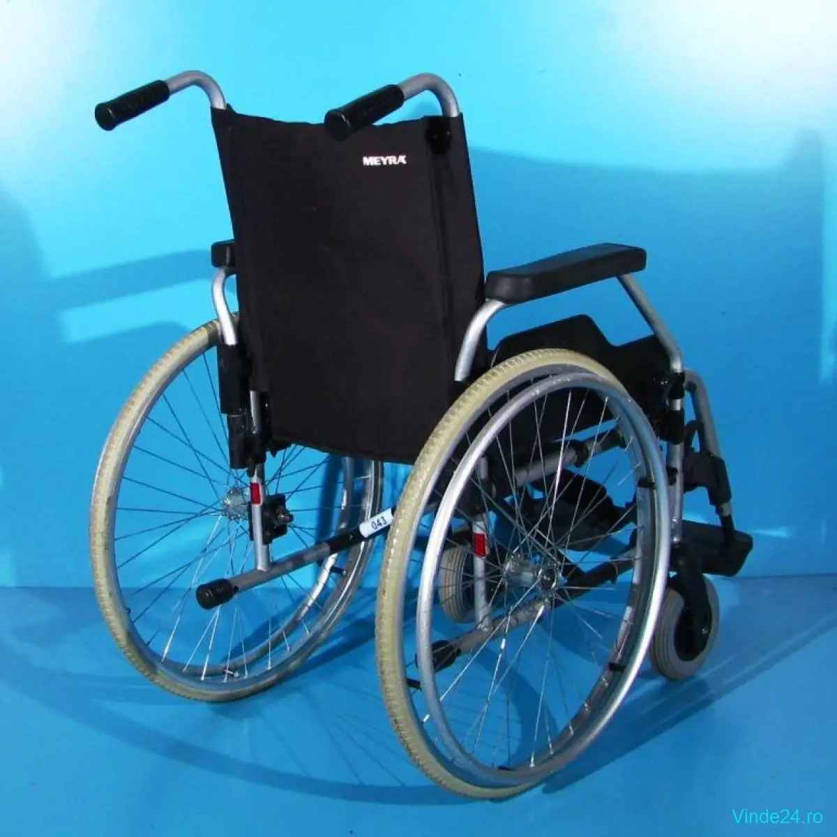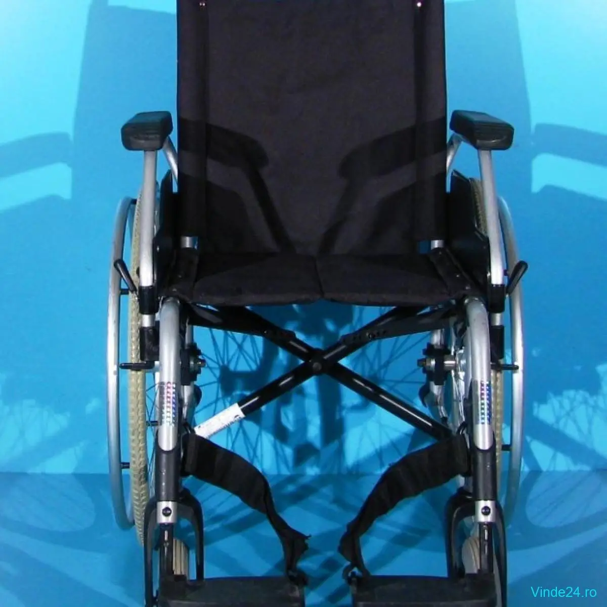 Carucior handicap second-hand, pliabil, cu detașarea rapidă a roților, destinat persoanelor cu mobilitate redusă.