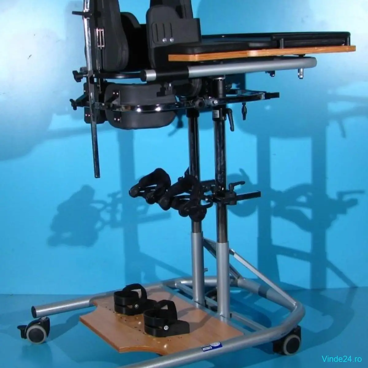 Verticalizatorul activ ofera utilizatorului reglaj pe inaltime pentru o pentru o pozitionare corecta in el datorita suportilor pentru zona lombara si respectiv a genunchilor.