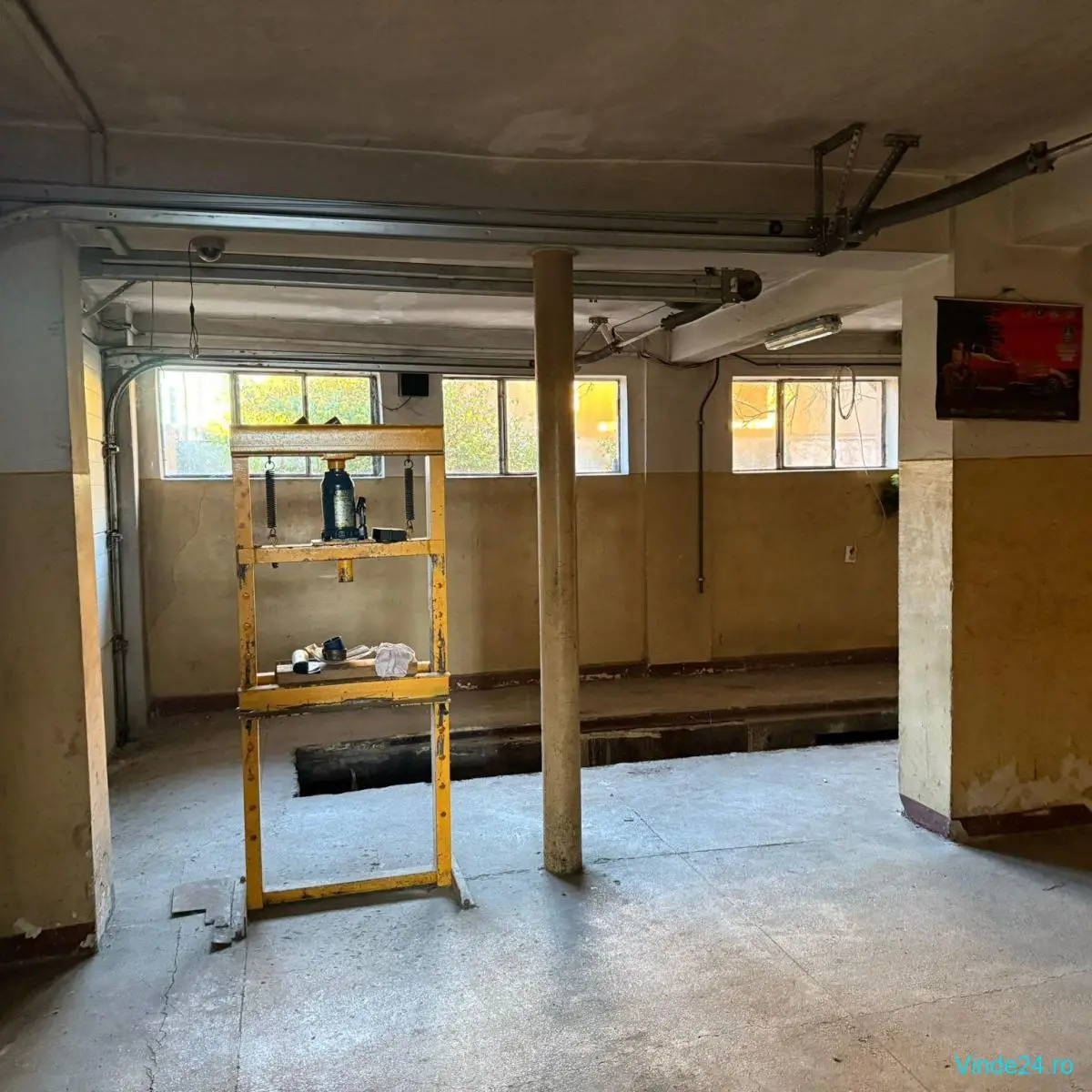 Parter: spațiu service auto, două uși de garaj, curte cu acces auto