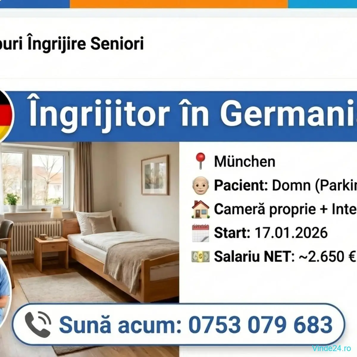 🏡 Locuiește la casă – îngrijitoarea are cameră proprie spațioasă (40 m²), televizor, baie și toaletă separată + internet disponibil.