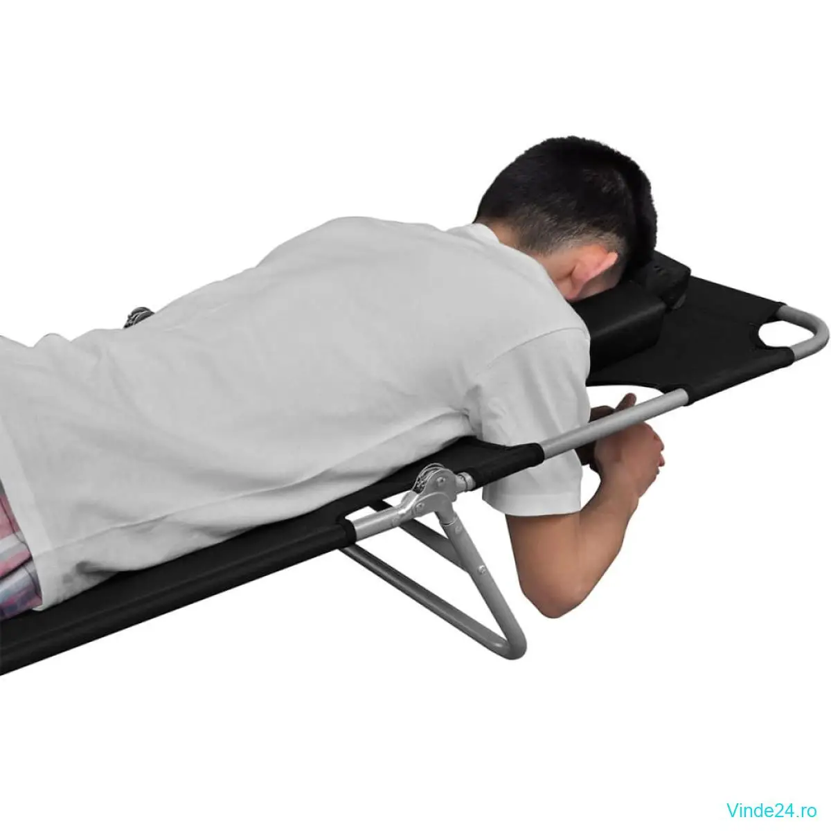 Cadrul cu înveliș epoxidic face ca acest șezlong să fie foarte solid. Se poate plia dacă nu mai este folosit.