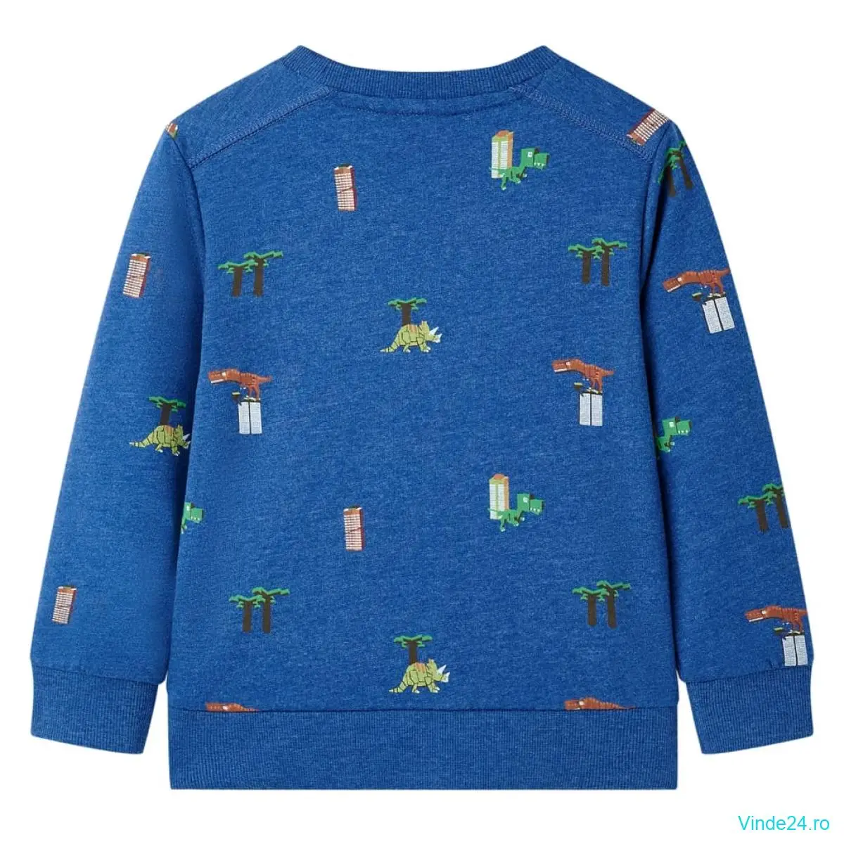 Acest bluzon pentru copii are mâneci lungi, decolteu rotund și margini cu model din elastic împletit la manșete, în jurul gâtului și în partea inferioară. Bluzonul pentru copii este imprimat cu dinozauri și copaci peste tot. Bluzonul pentru copii este confecționat dintr-un material moale care include 80% bumbac periat și 20% poliester, pentru confort și respirabilitate.