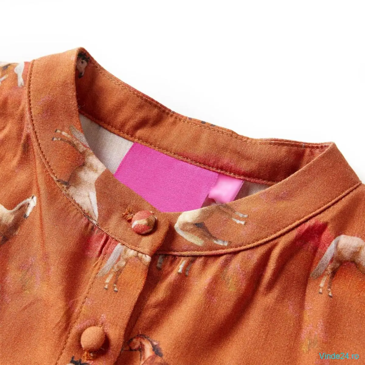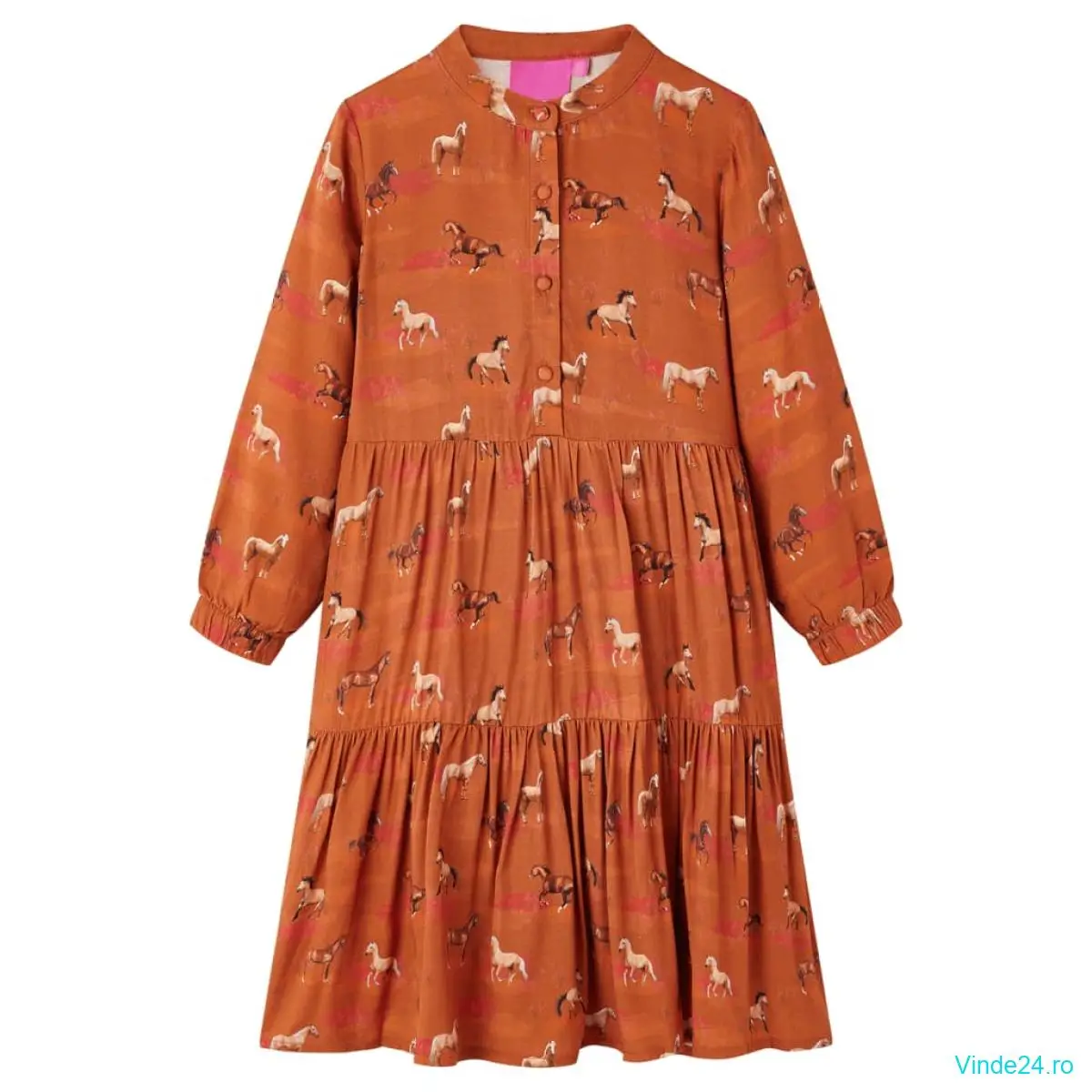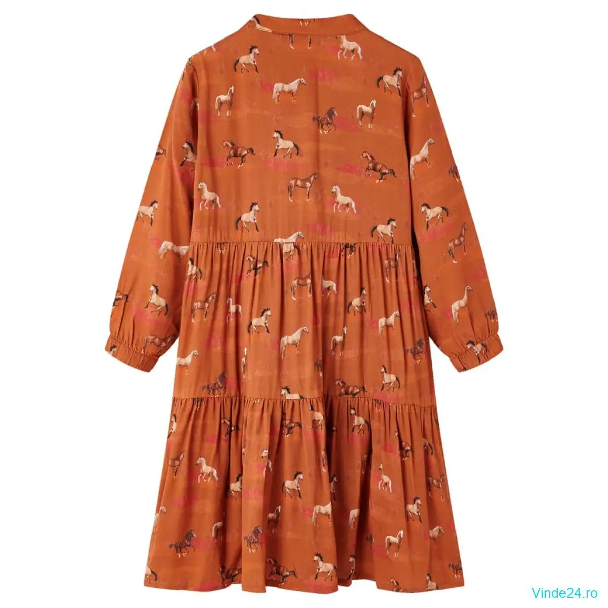 Această rochie pentru copii are mâneci lungi, guler bandă și se închide cu nasturi în față. Rochia pentru fete este imprimată cu cai minunați, elastică la manșete și cusături strânse în talie și genunchi. Confecționată din lyocell, fusta pentru copii este delicată și respirabilă.