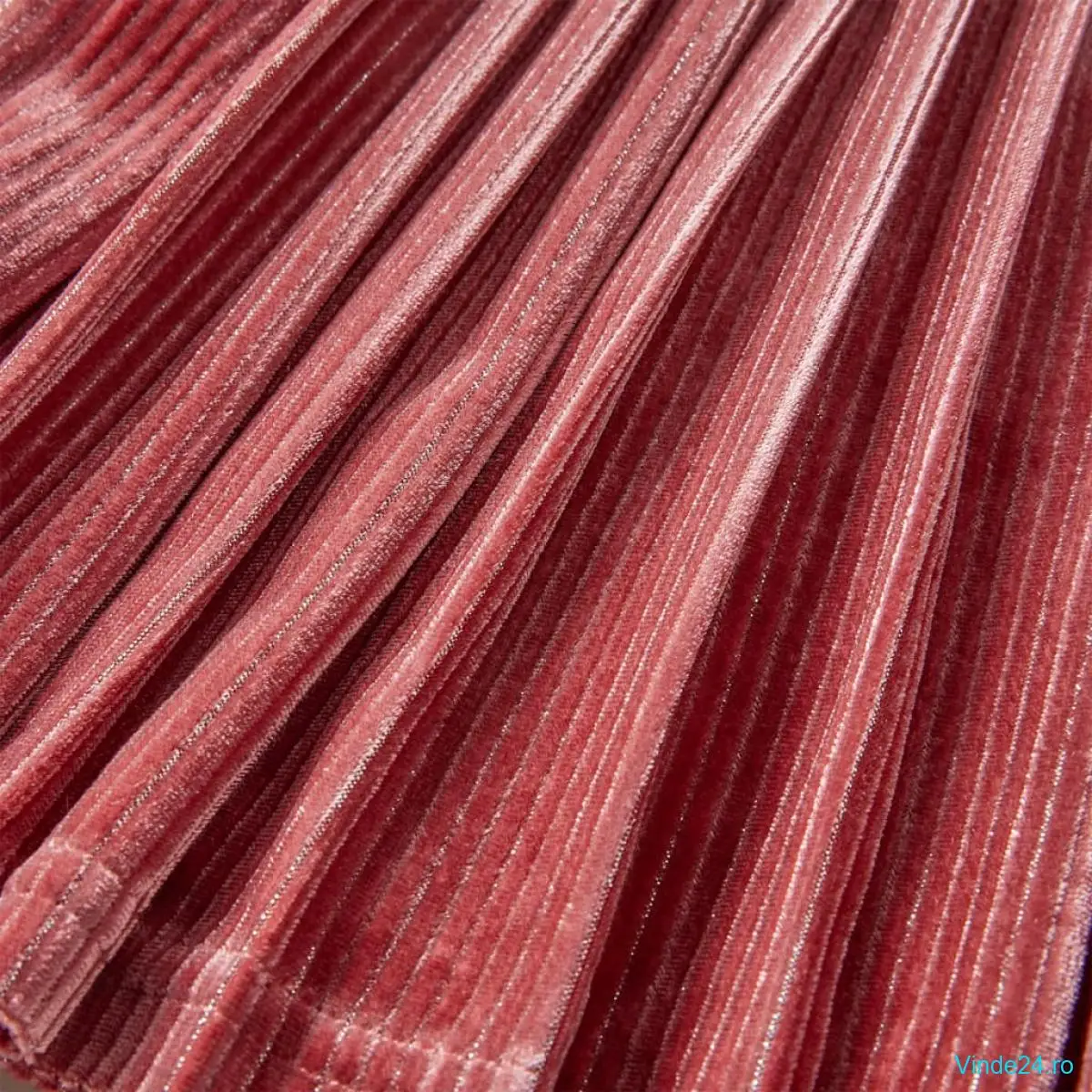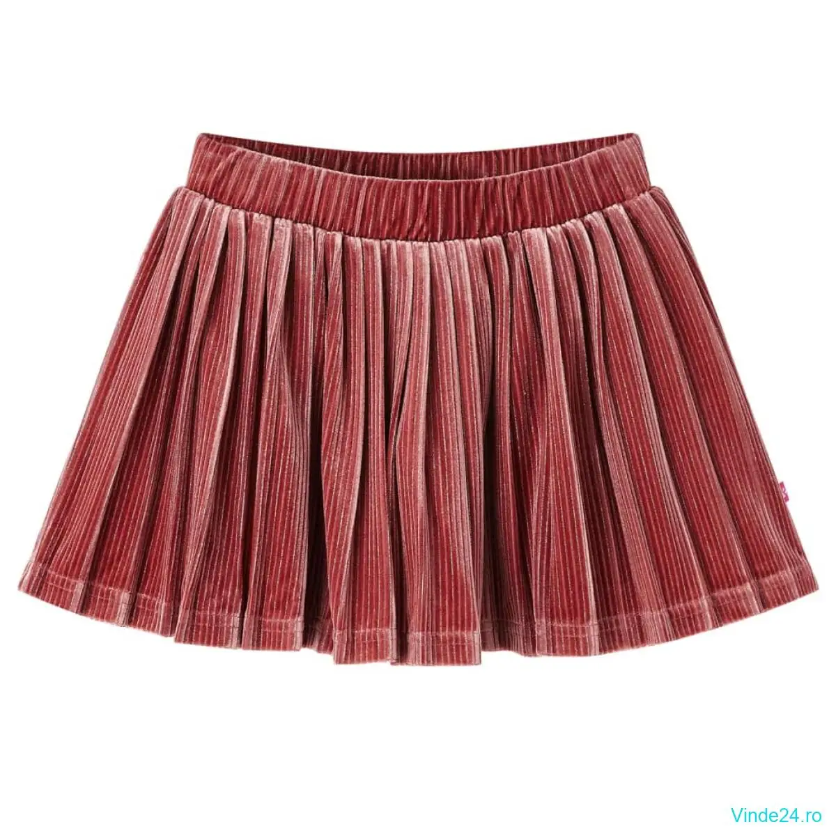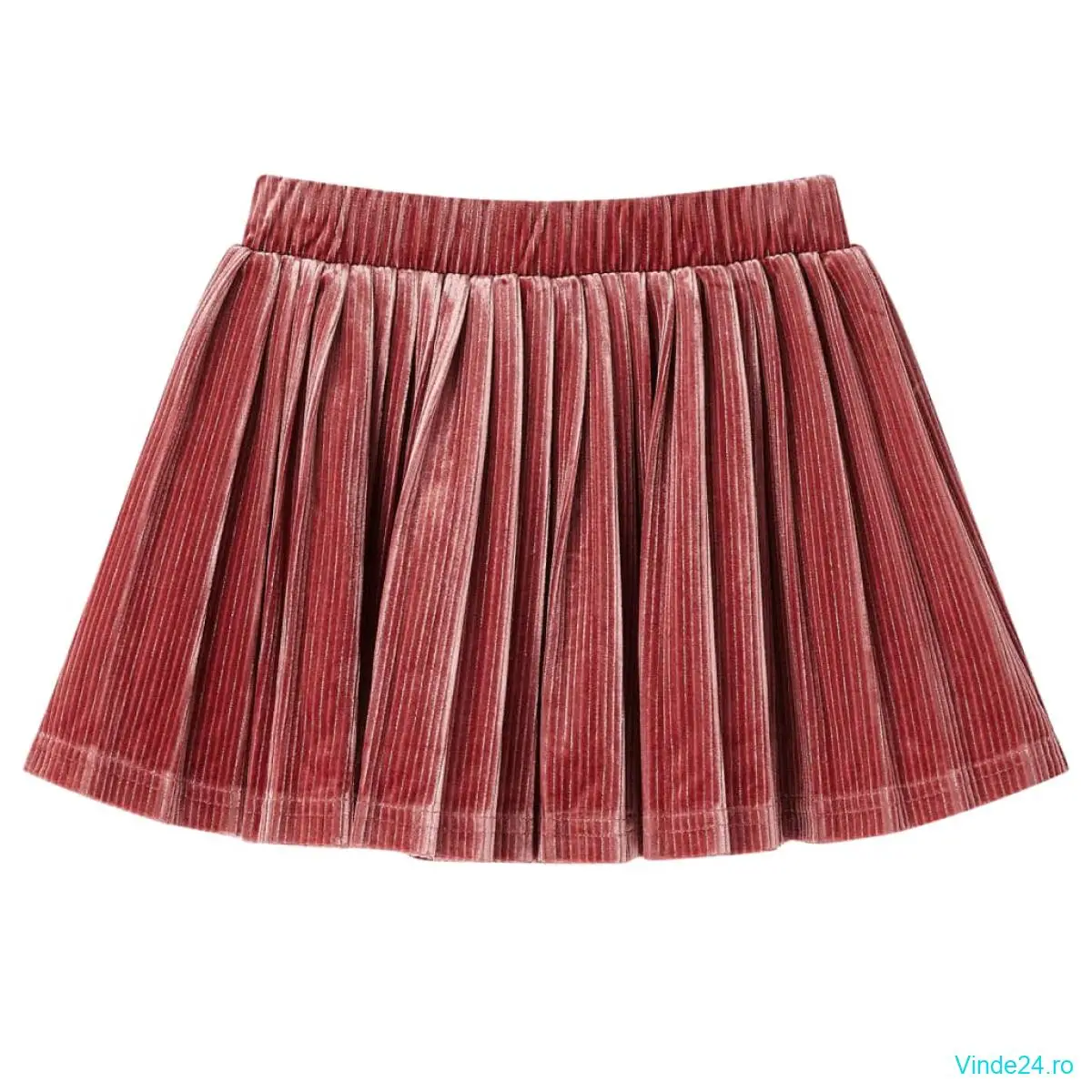 Această fustă pentru copii are un design în formă de A și o bandă elastică în talie. Pliurile adaugă eleganță fustei scurte pentru copii. Fusta pentru copii este confecționată din catifea moale ce include poliester și elastan pentru confort și respirabilitate.
