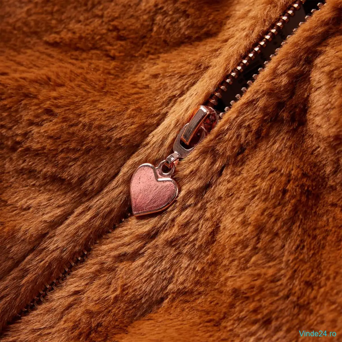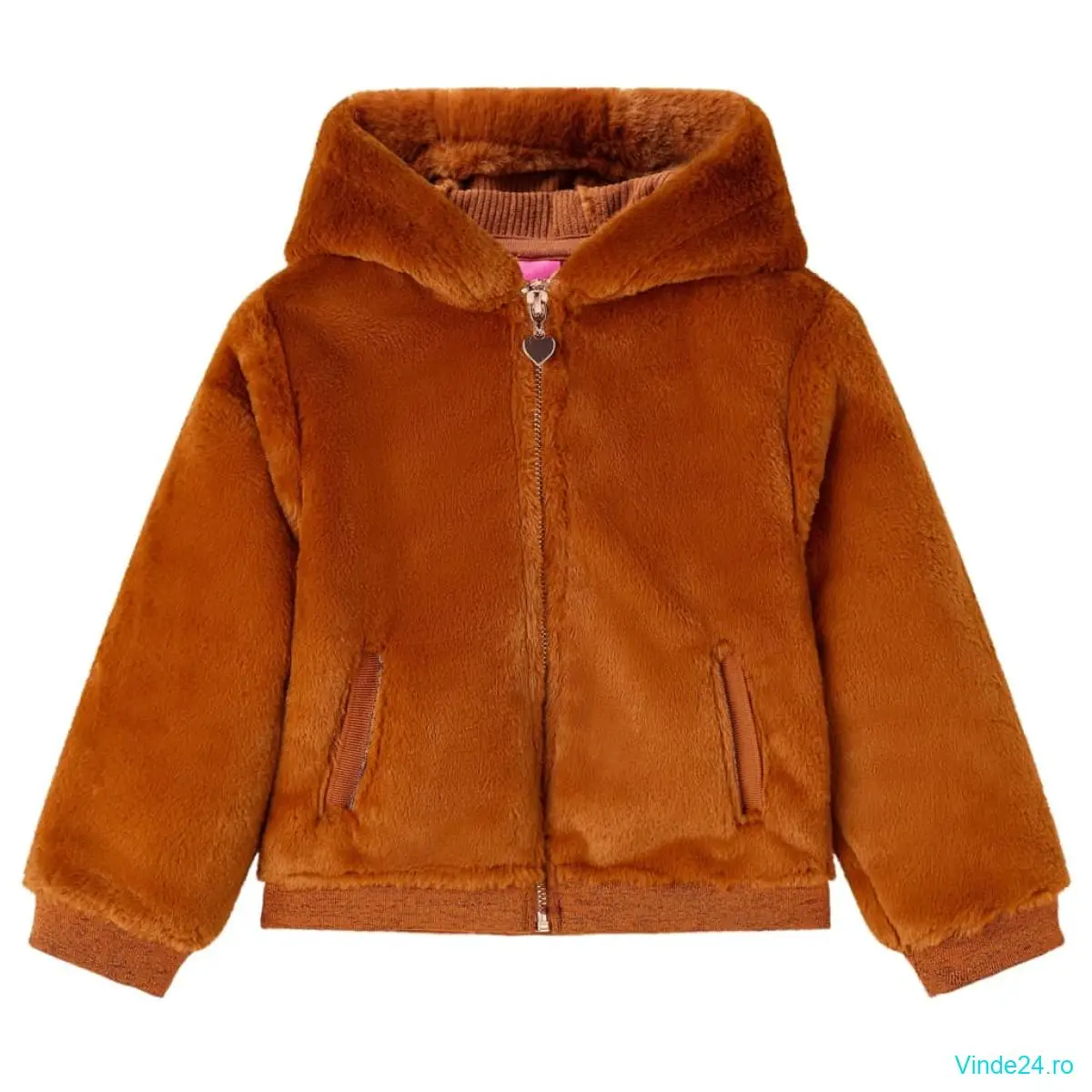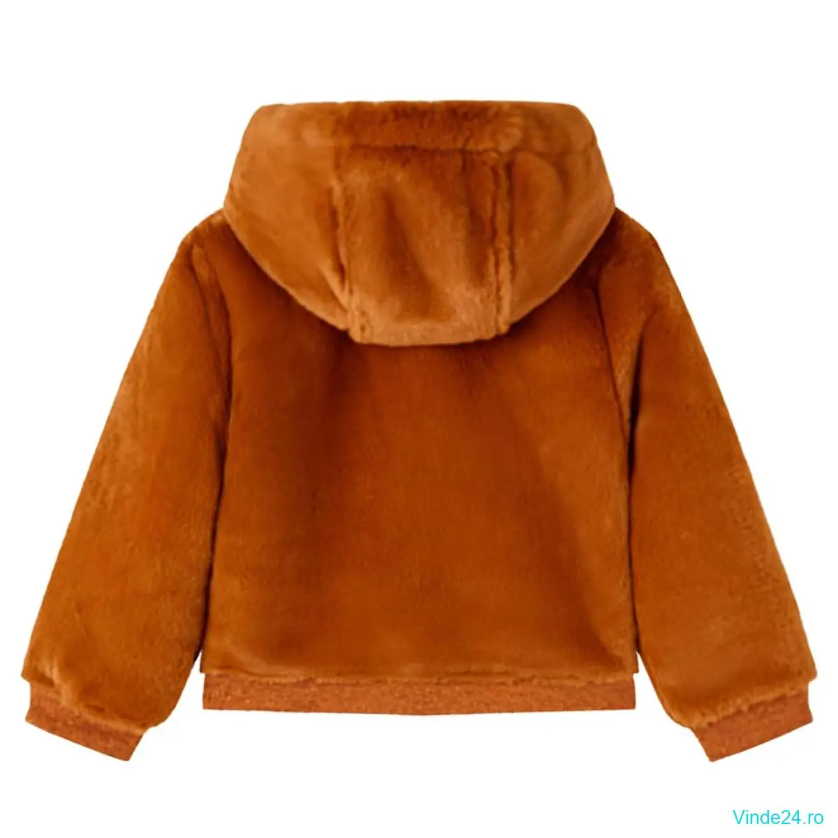 Jachetă cu glugă pentru copii, blană artificială, coniac, 140