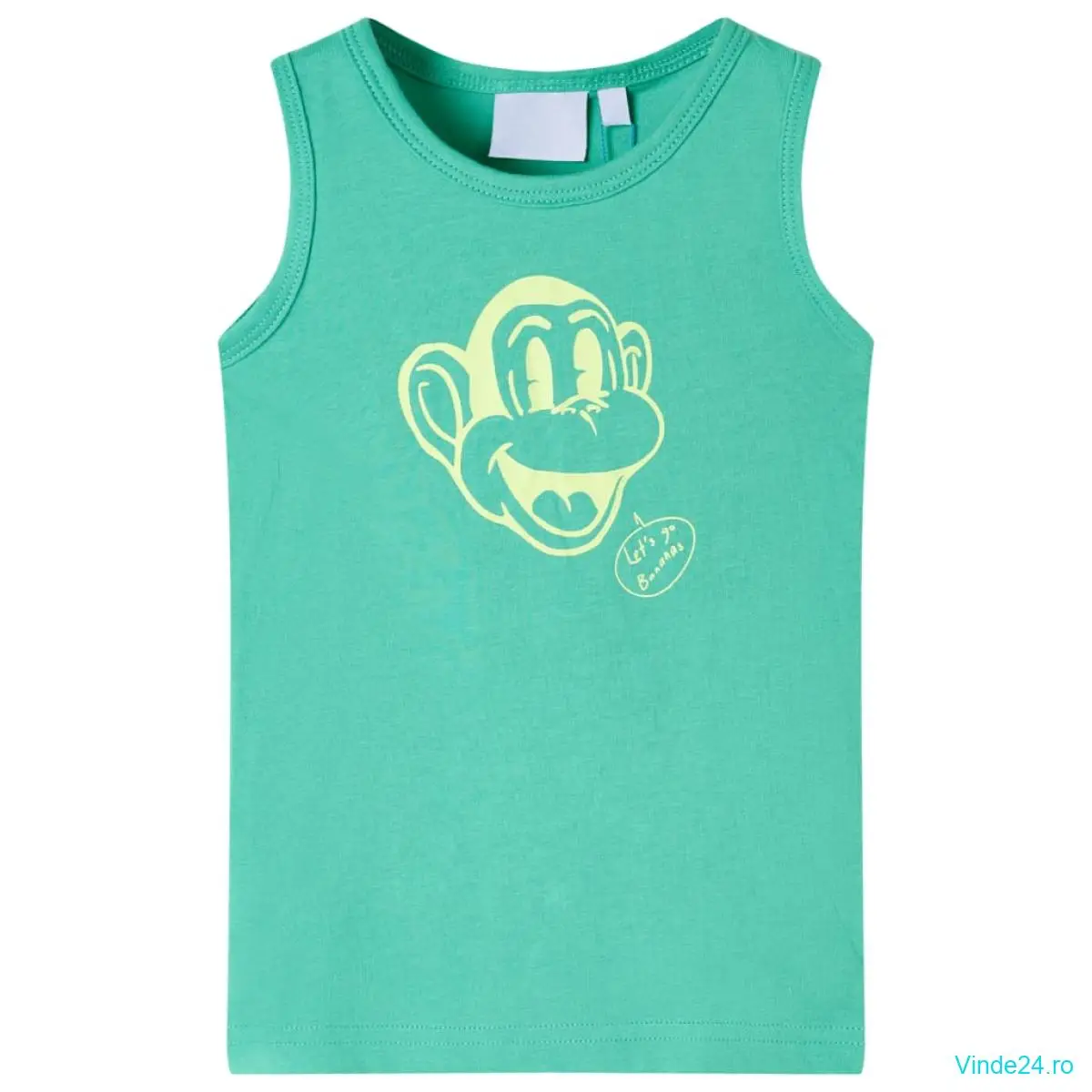 Acest maiou pentru copii are un decolteu rotund și o croială dreaptă. Acest maiou pentru copii este imprimat cu un cap de maimuță. Maioul pentru copii este confecționat din 60% bumbac și 40% poliester, pentru o atingere moale și confortabilă.
