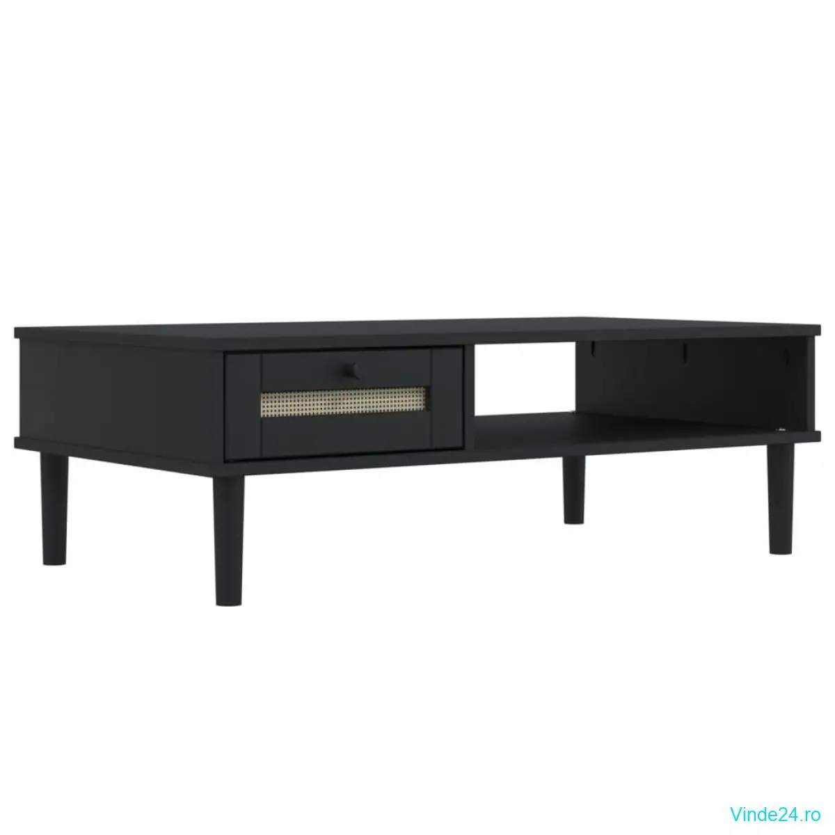- Material: Lemn masiv de pin finisat cu lac UV, lemn prelucrat, poliratan