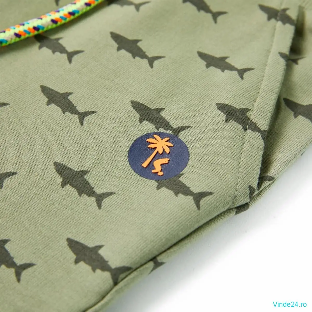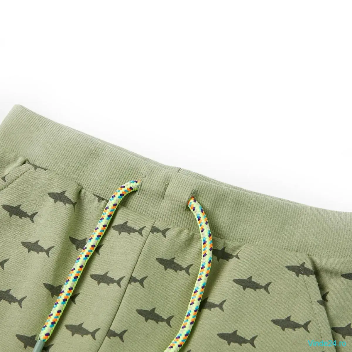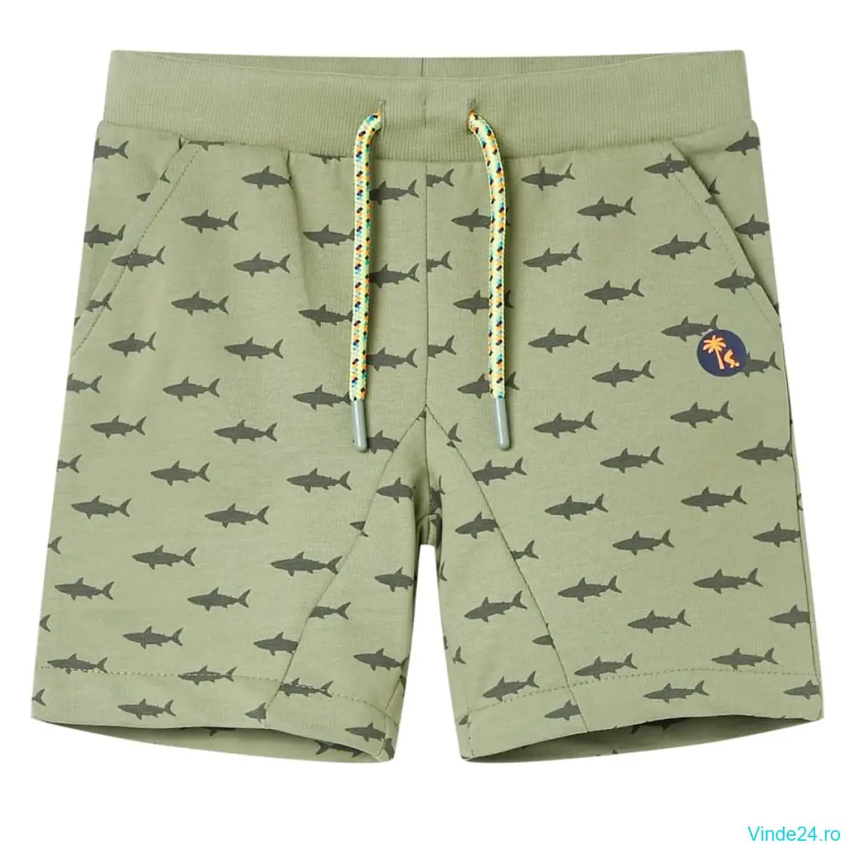 Pantalonii scurți pentru copii prezintă rechini peste tot. Această pereche de pantaloni scurți pentru copii are o betelie elastică în talie, un buzunar fals la spate, două buzunare laterale și tiv cusut răsucit. Pantalonii scurți pentru copii sunt confecționați din material moale care include 100% bumbac, pentru confort și respirabilitate.