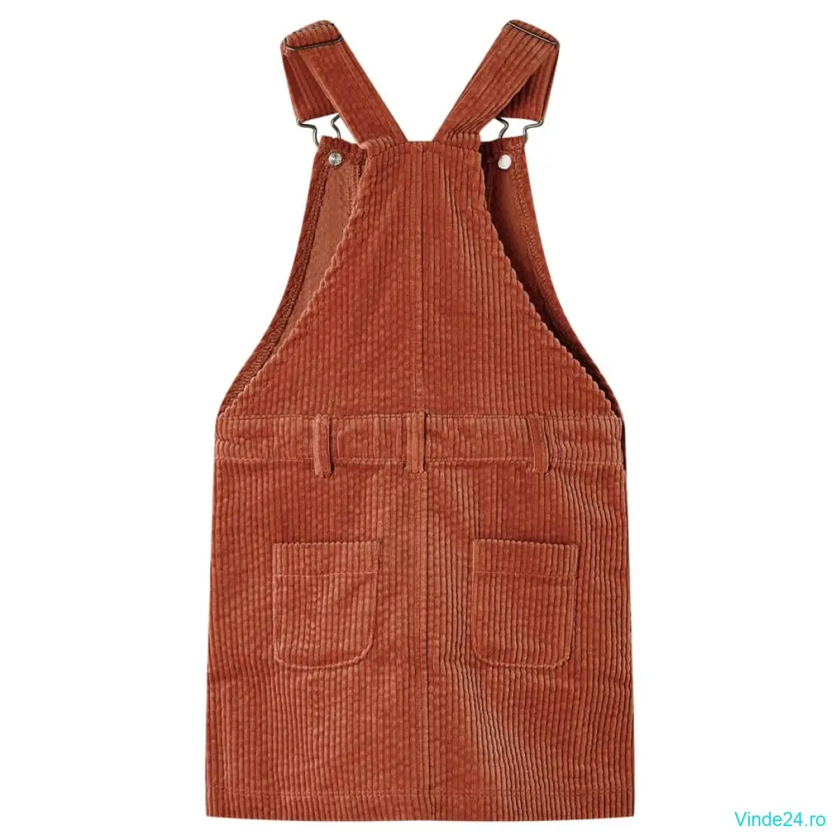 Această rochie salopetă pentru copii este prevăzută cu bretele reglabile, nasturi în lateral și buzunare aplicate. Salopeta pentru copii este confecționată din velur 100% bumbac, oferind un plus de confort.