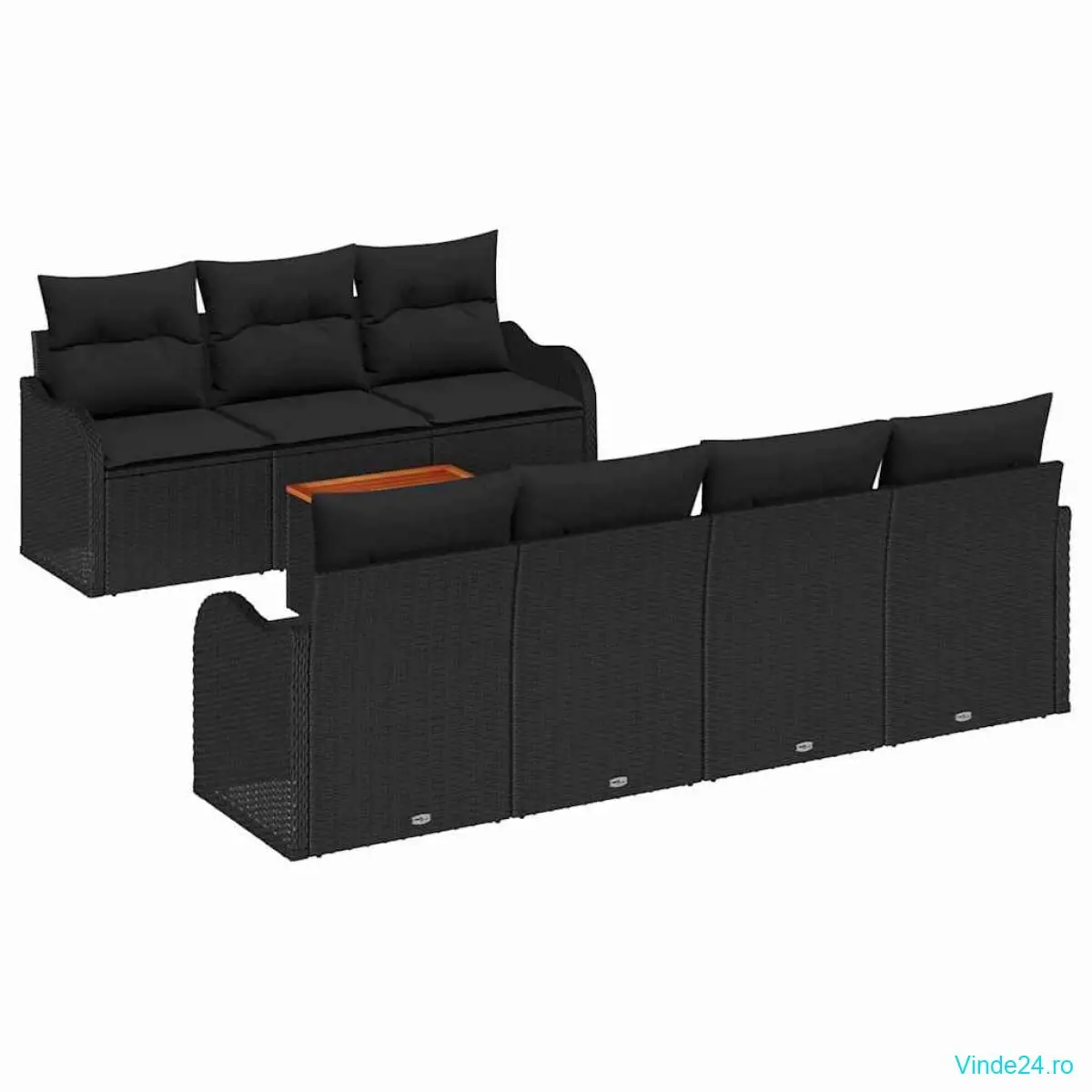 Set 8 Piese Canapea Grădină cu Perne Negru Poliratan Acacia